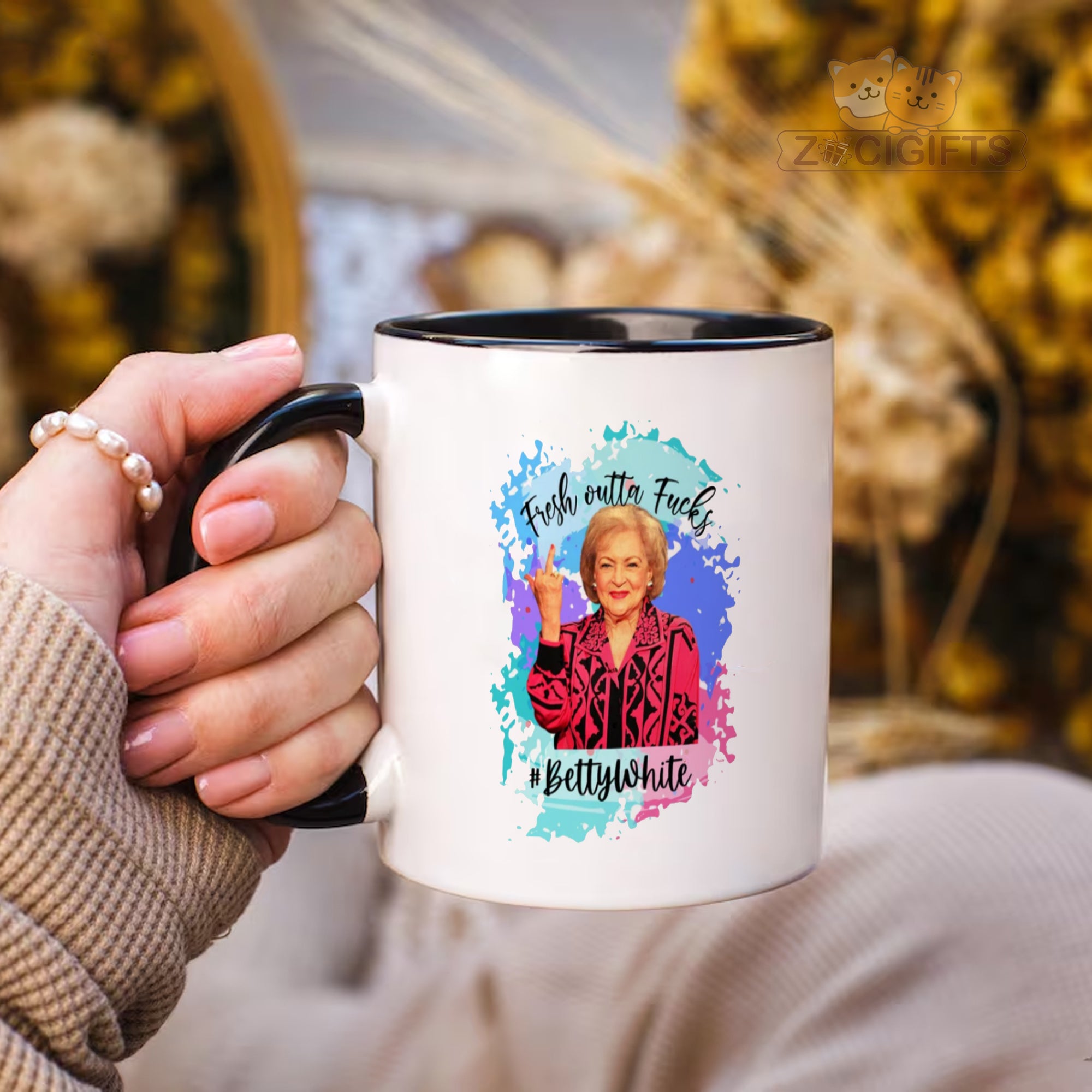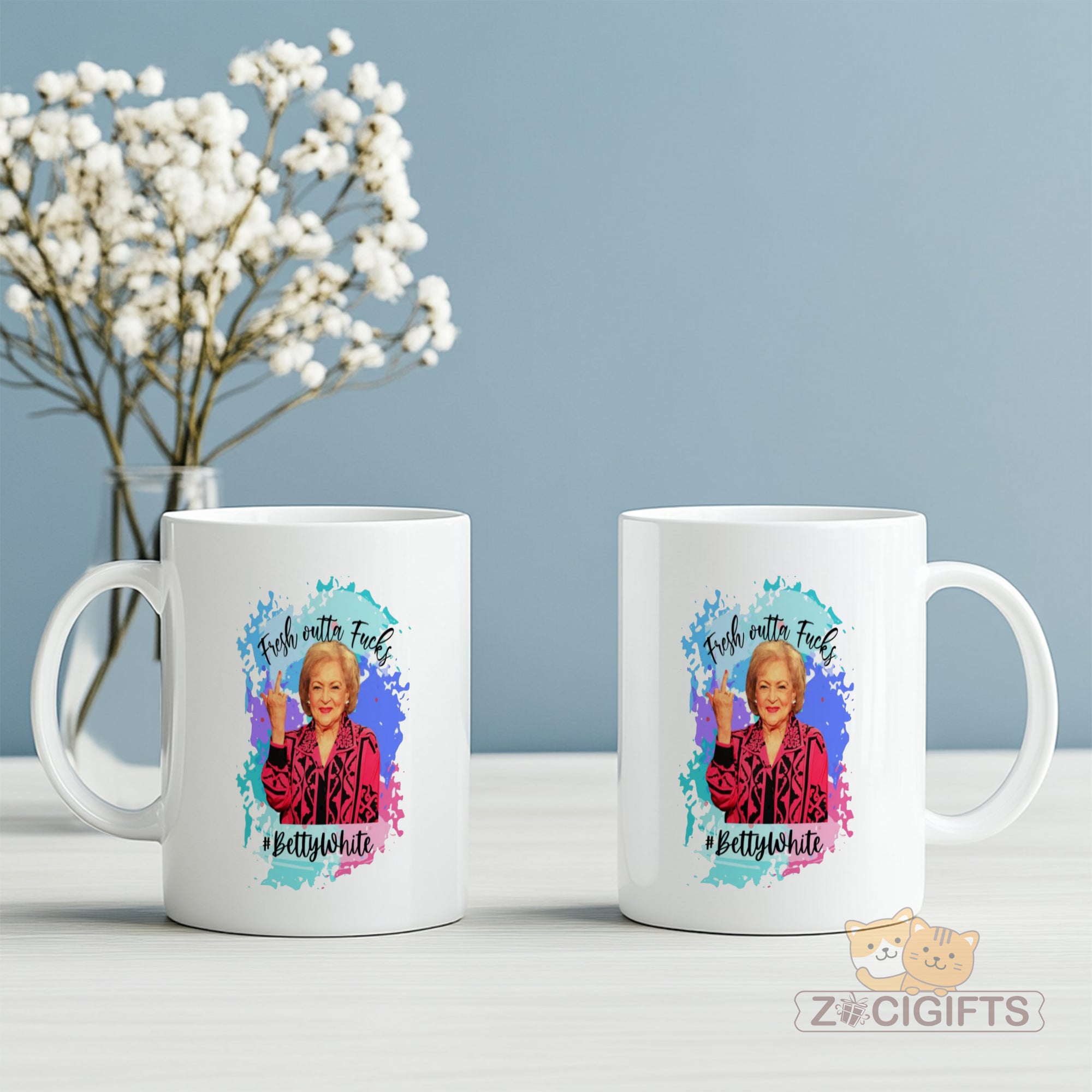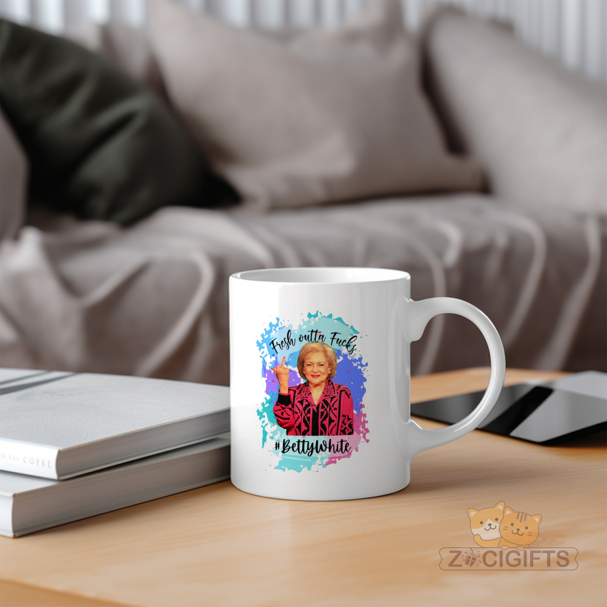 It makes a great gift for birthdays, holidays, or just to show someone you care in a fun and unique way. The high - quality ceramic construction ensures durability and a comfortable grip. So why settle for a boring mug when you can have one that brings a smile to your face every time you take a sip? Order your Betty White "Fresh Outta Fucks" mug today and add some humor to your day!