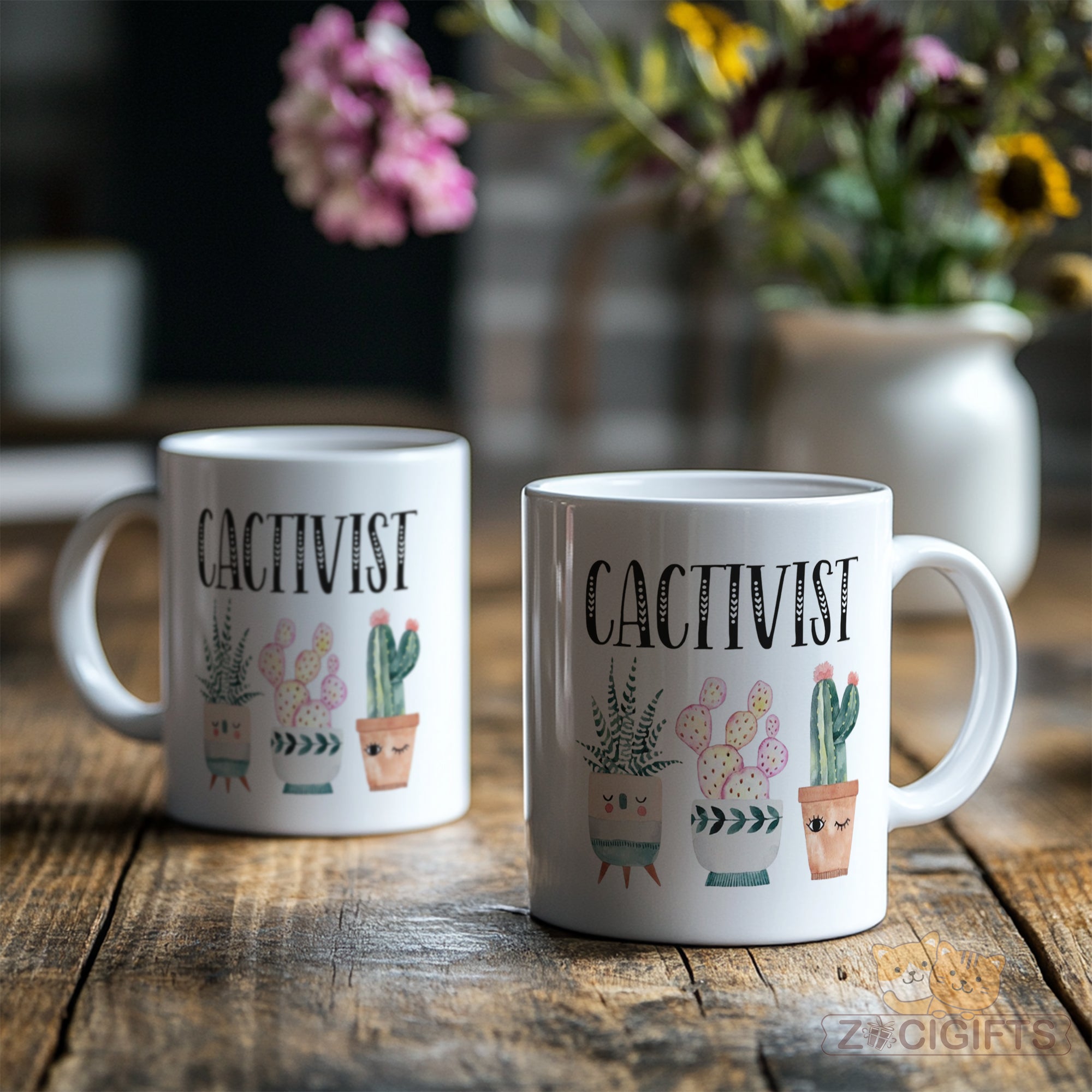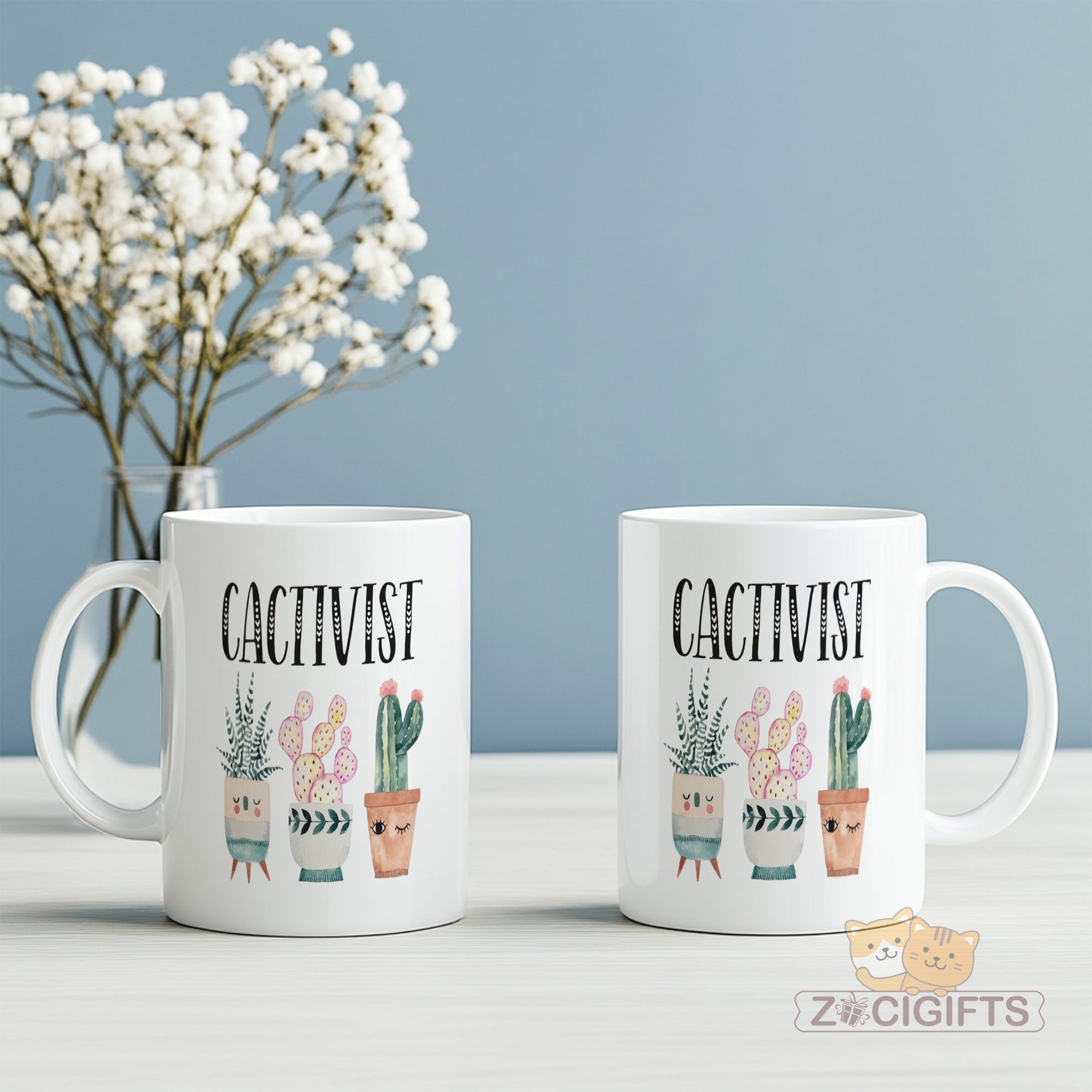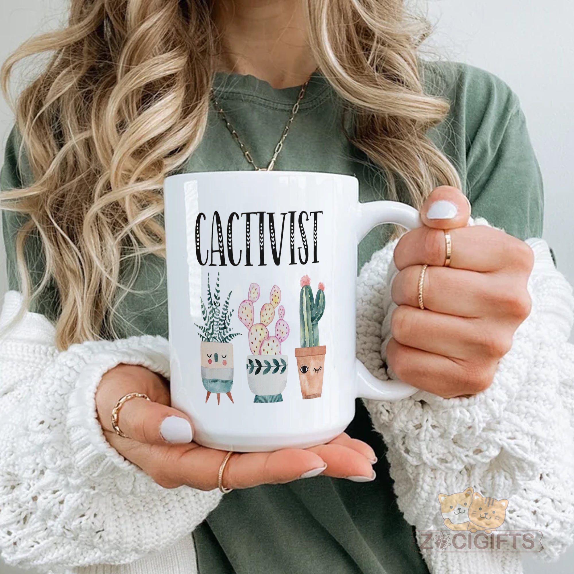 Note: Expect smiles from fellow plant lovers who’ll adore the cute cactus illustrations and clever “CACTIVIST” wordplay!