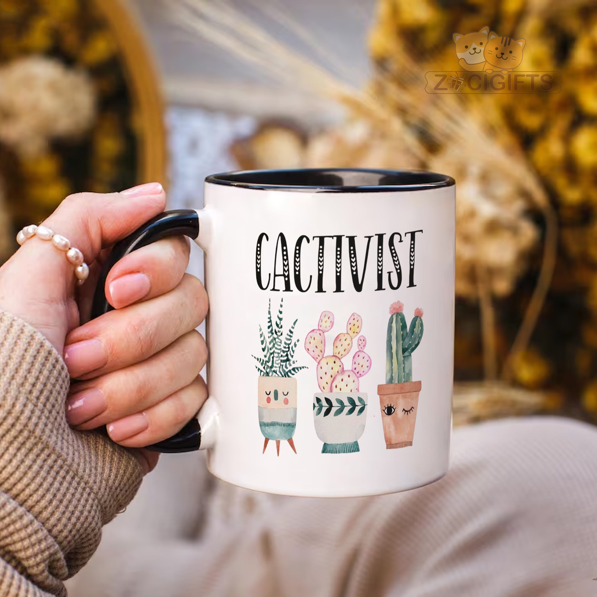 If you’re obsessed with cacti, love whimsical plant art, or want to show off your “cactivist” spirit (a playful mix of cactus + activist) — this mug is your perfect green companion. Featuring adorable cartoon cacti in quirky pots (complete with cute faces) and the bold text “CACTIVIST,” it’s ideal for plant lovers, environmental enthusiasts, or anyone who adores cozy, botanical decor.