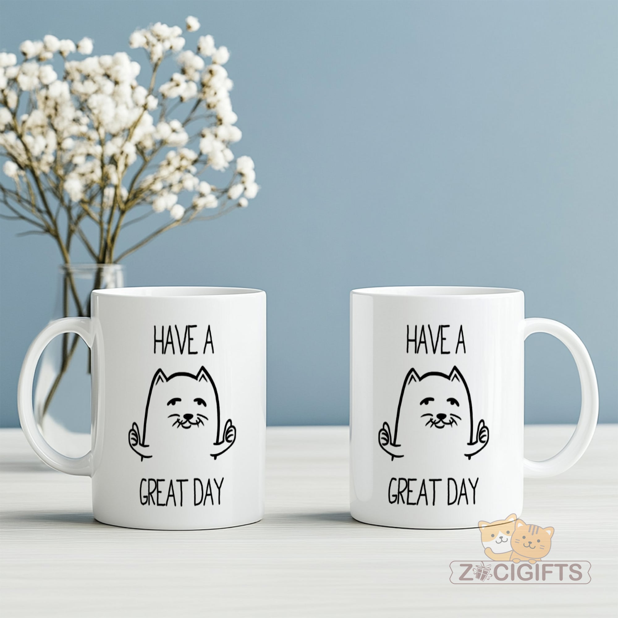 Elevate your daily beverage experience with our adorable cat - themed ceramic mug! This charming mug features a delightful illustration of a smiling cat, accompanied by the heart - warming quote "Have a Great Day". Whether you're starting your morning with a cup of coffee or winding down in the evening with a soothing cup of tea, this mug is sure to bring a touch of joy to your routine.