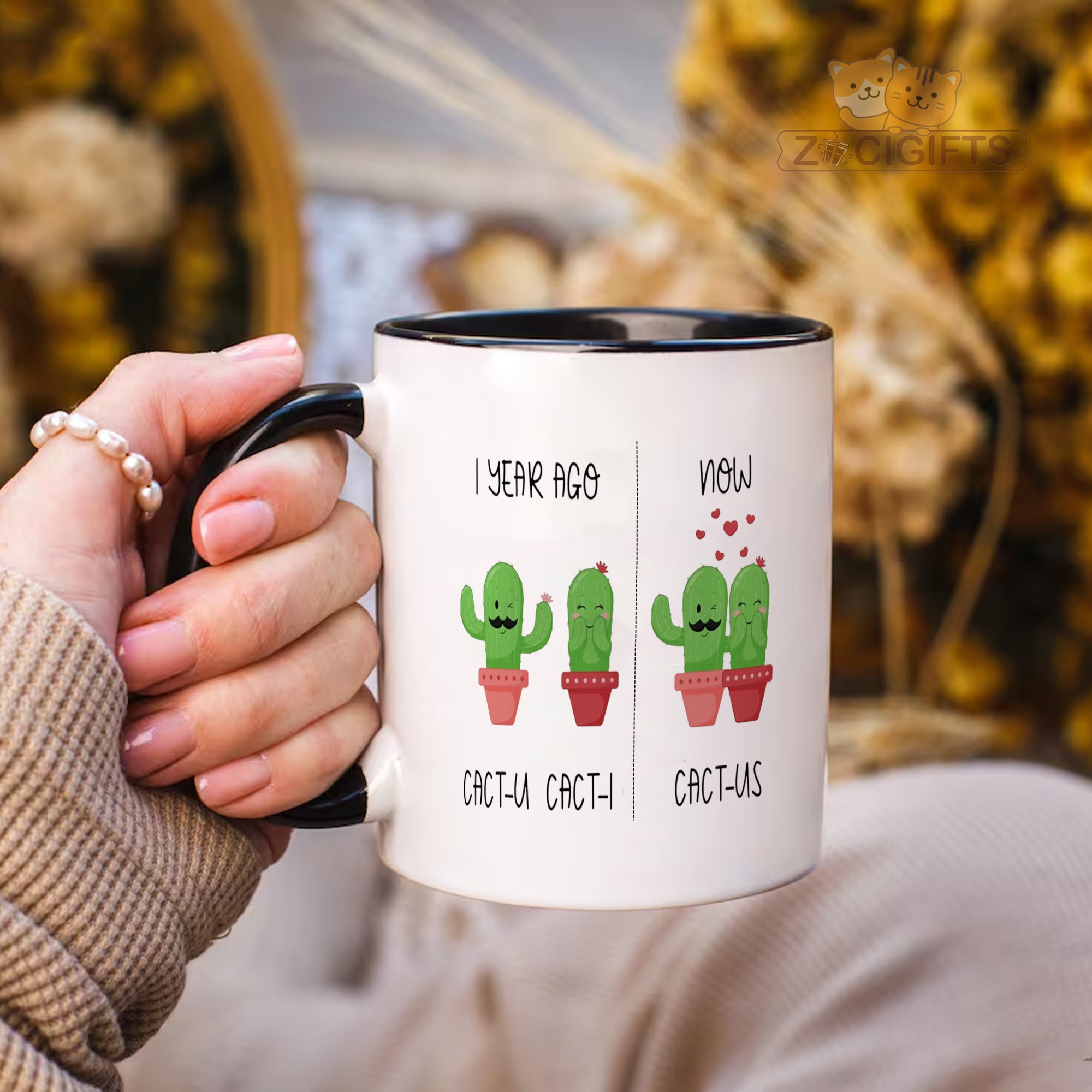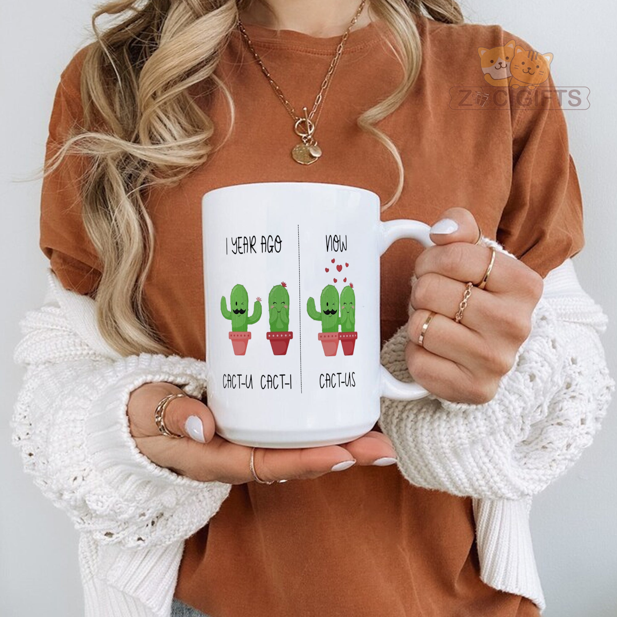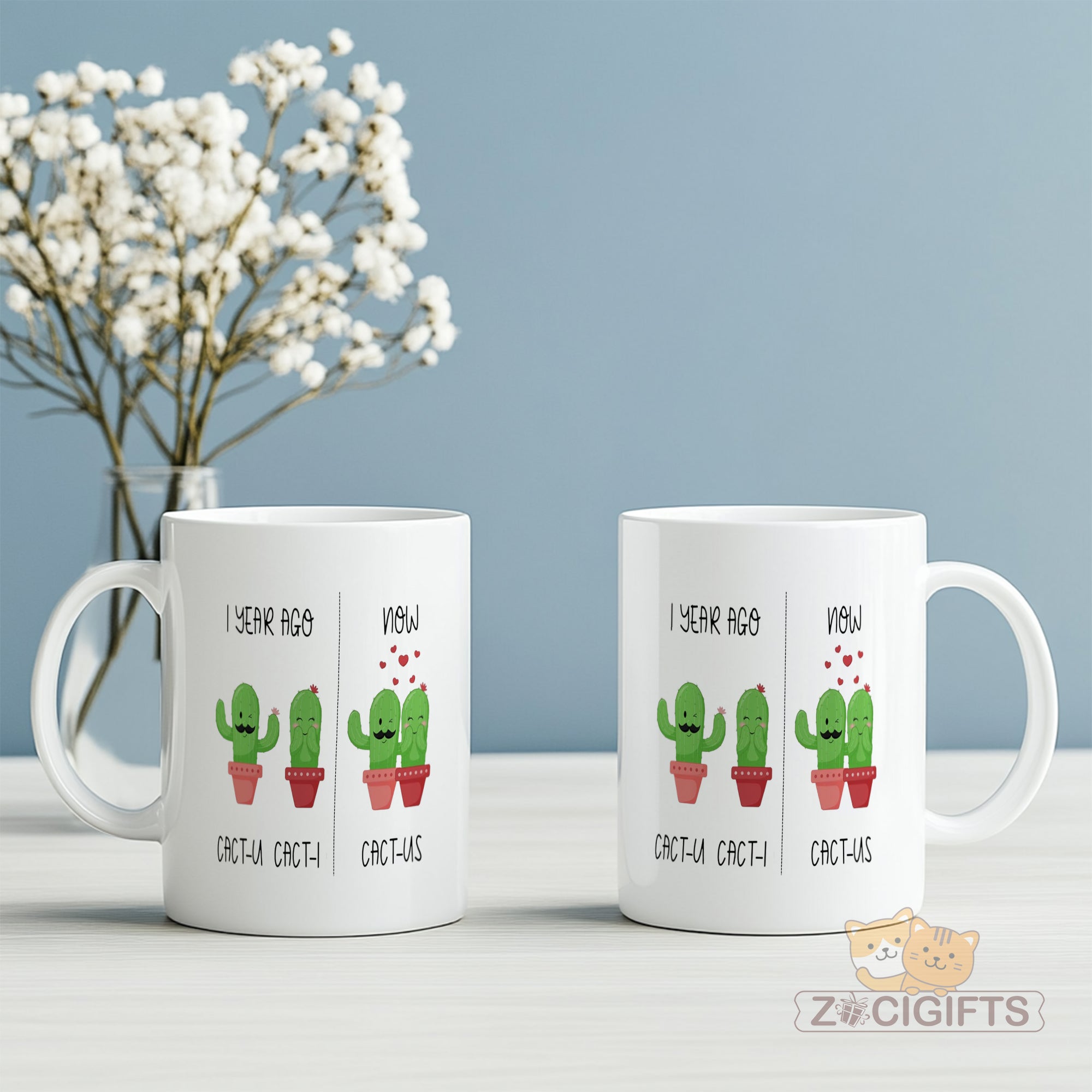 Celebrate love and laughter with our Couple Cactus Mug ¨C a whimsical coffee cup that¡¯s as charming as your relationship! Featuring adorable cactus illustrations with a clever pun twist (¡®CACT-U¡¯ + ¡®CACT-I¡¯ = ¡®CACT-US¡¯), this mug is perfect for: