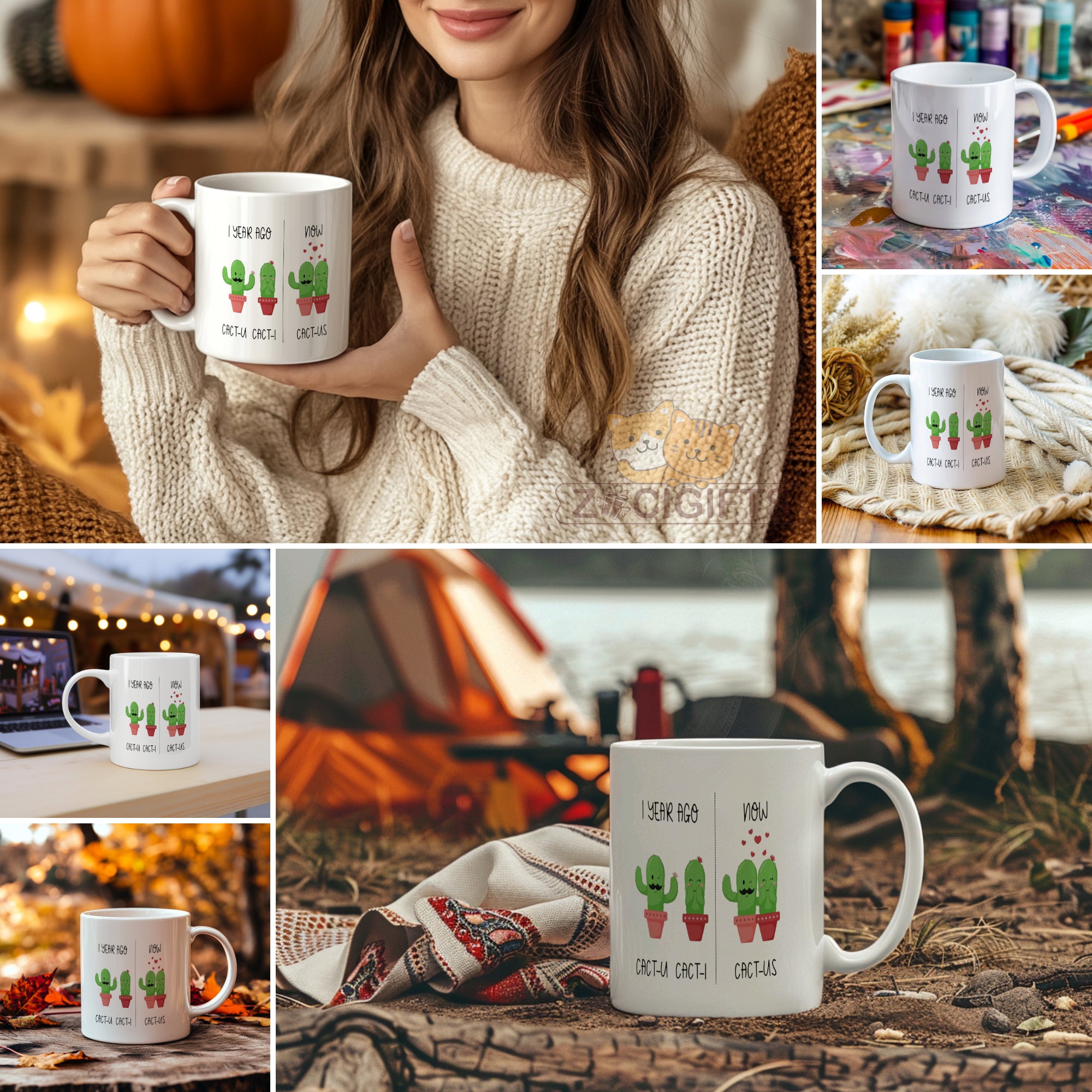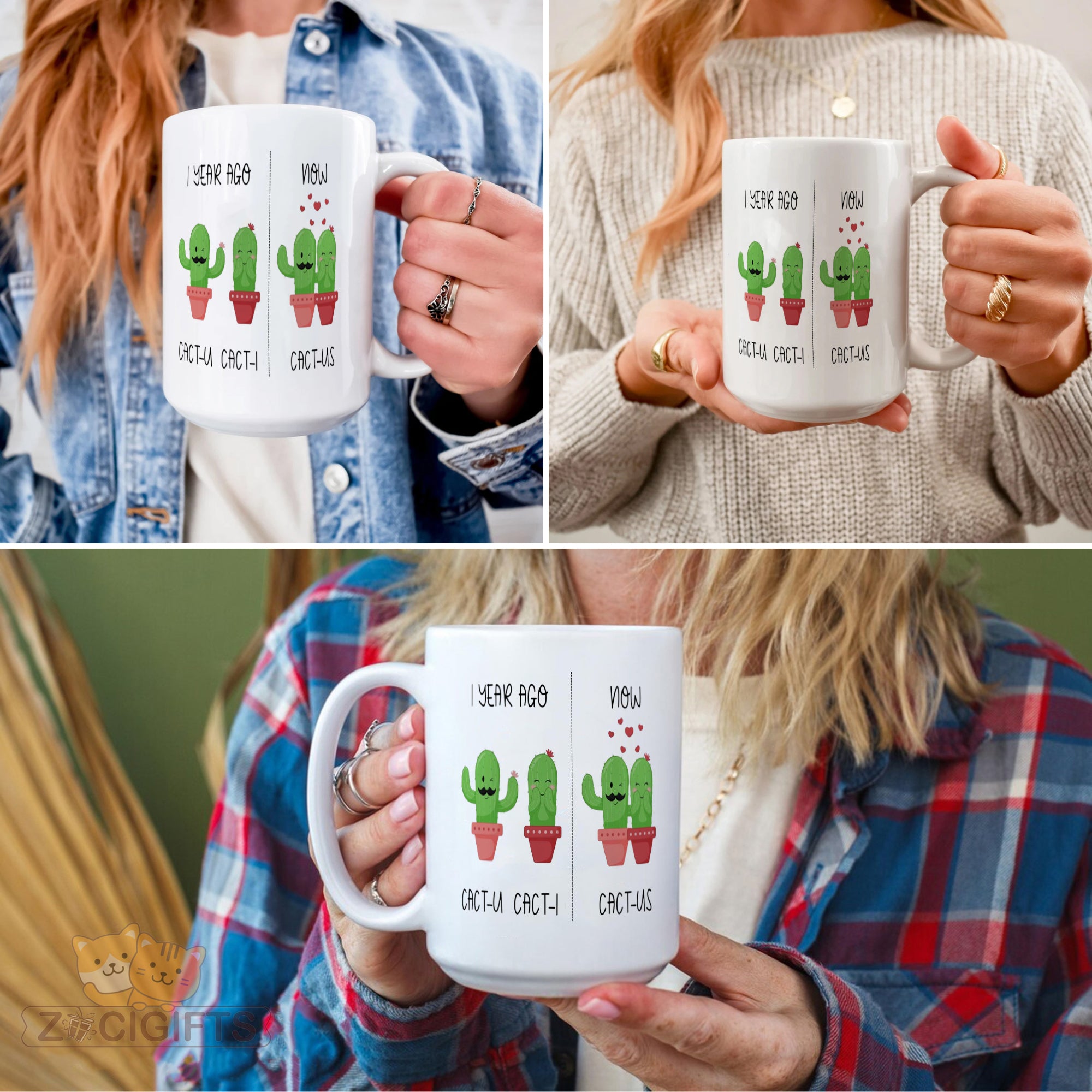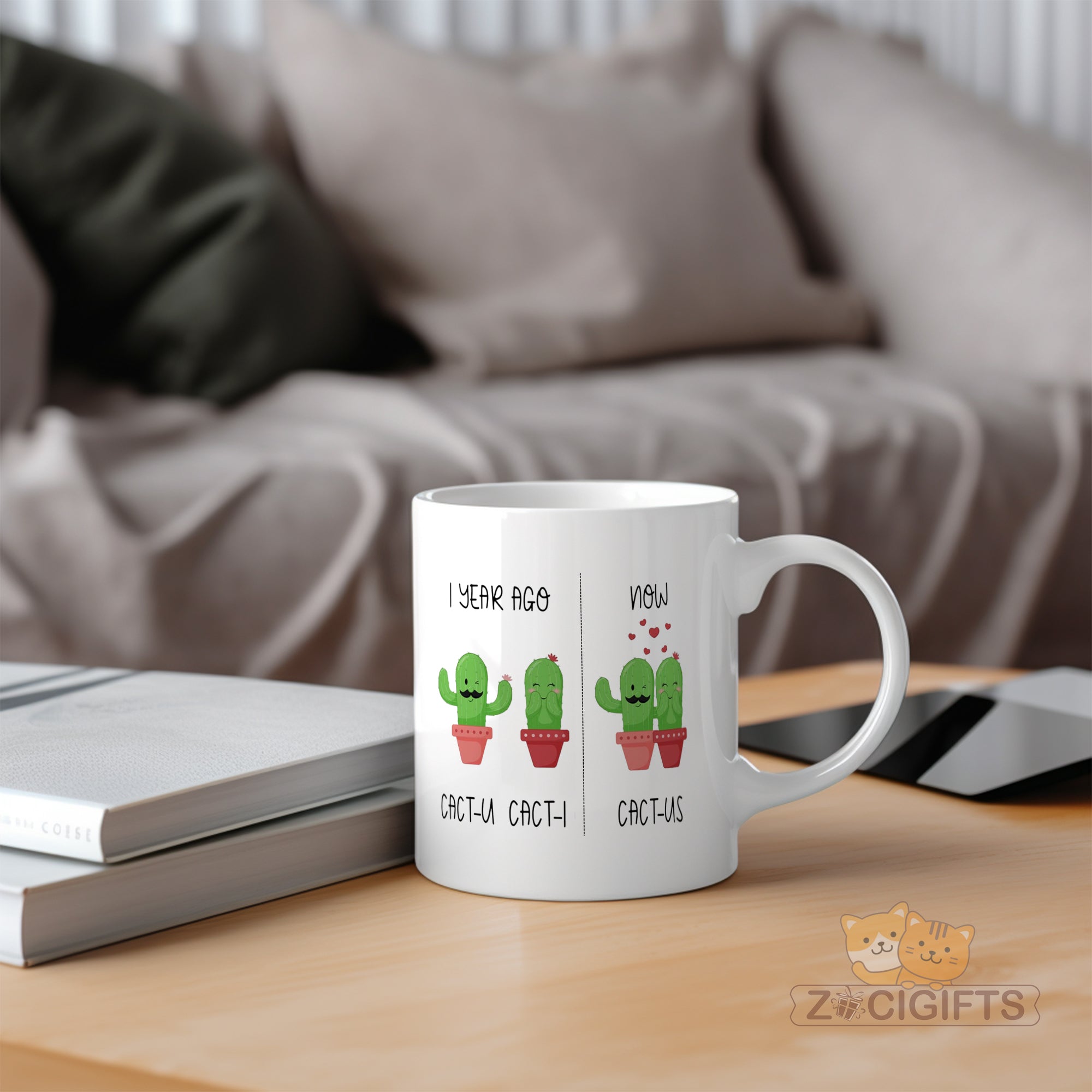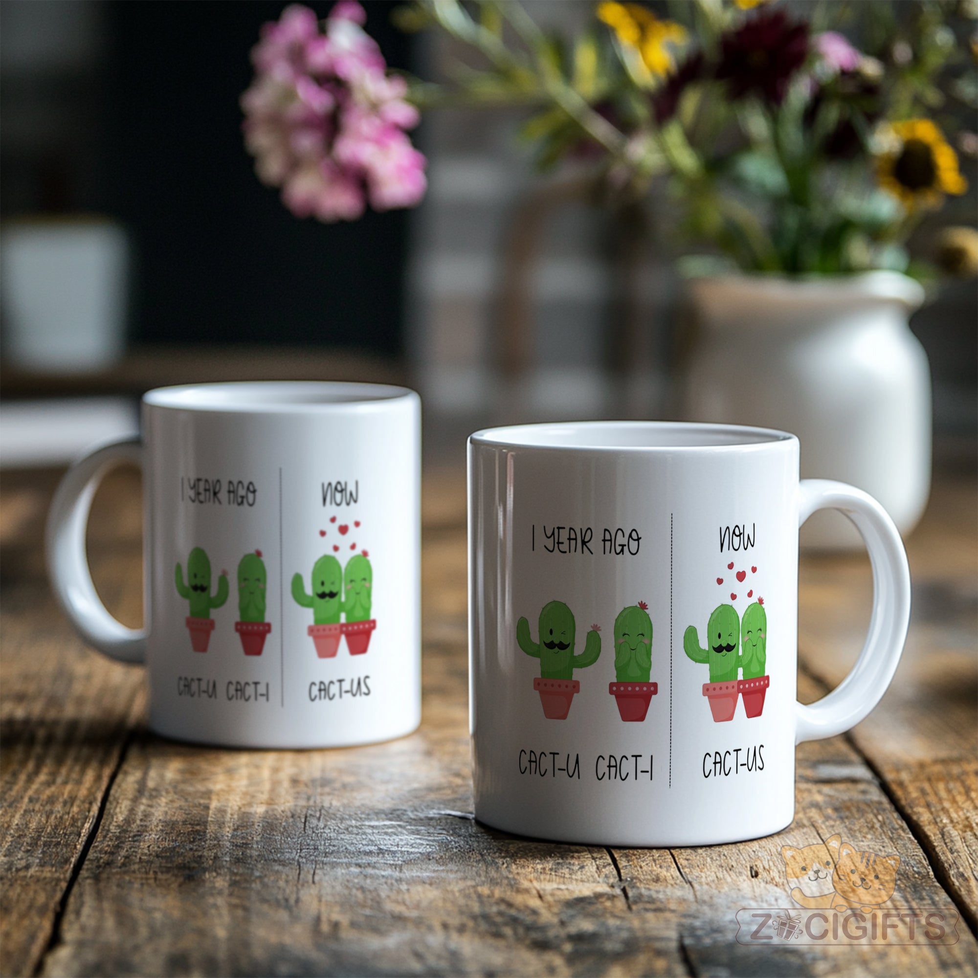 Celebrate love and laughter with our Couple Cactus Mug ¨C a whimsical coffee cup that¡¯s as charming as your relationship! Featuring adorable cactus illustrations with a clever pun twist (¡®CACT-U¡¯ + ¡®CACT-I¡¯ = ¡®CACT-US¡¯), this mug is perfect for: