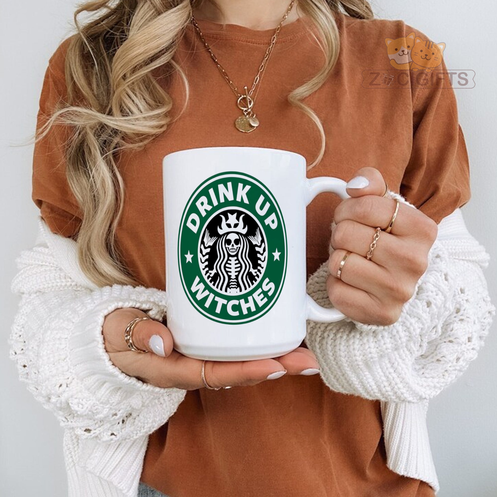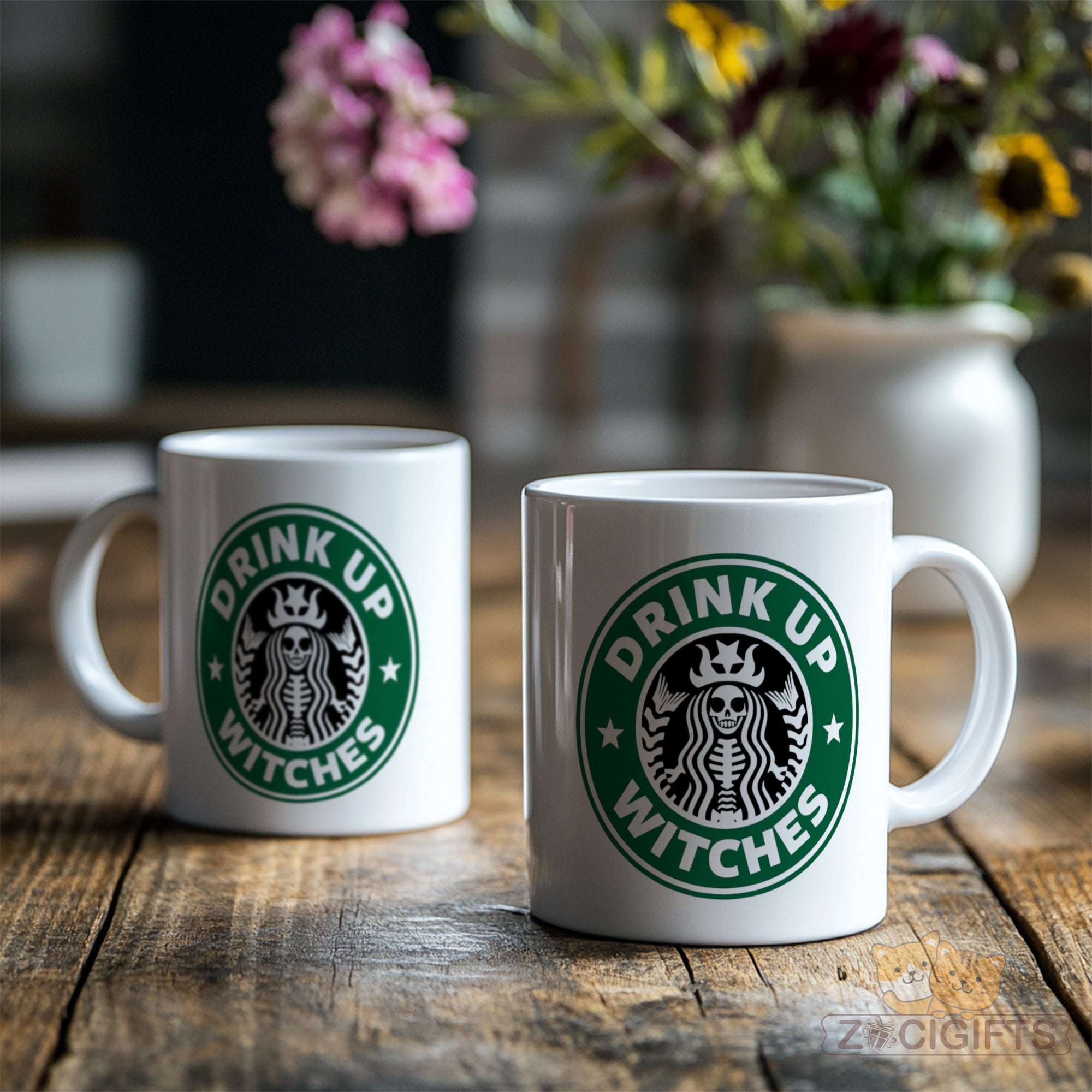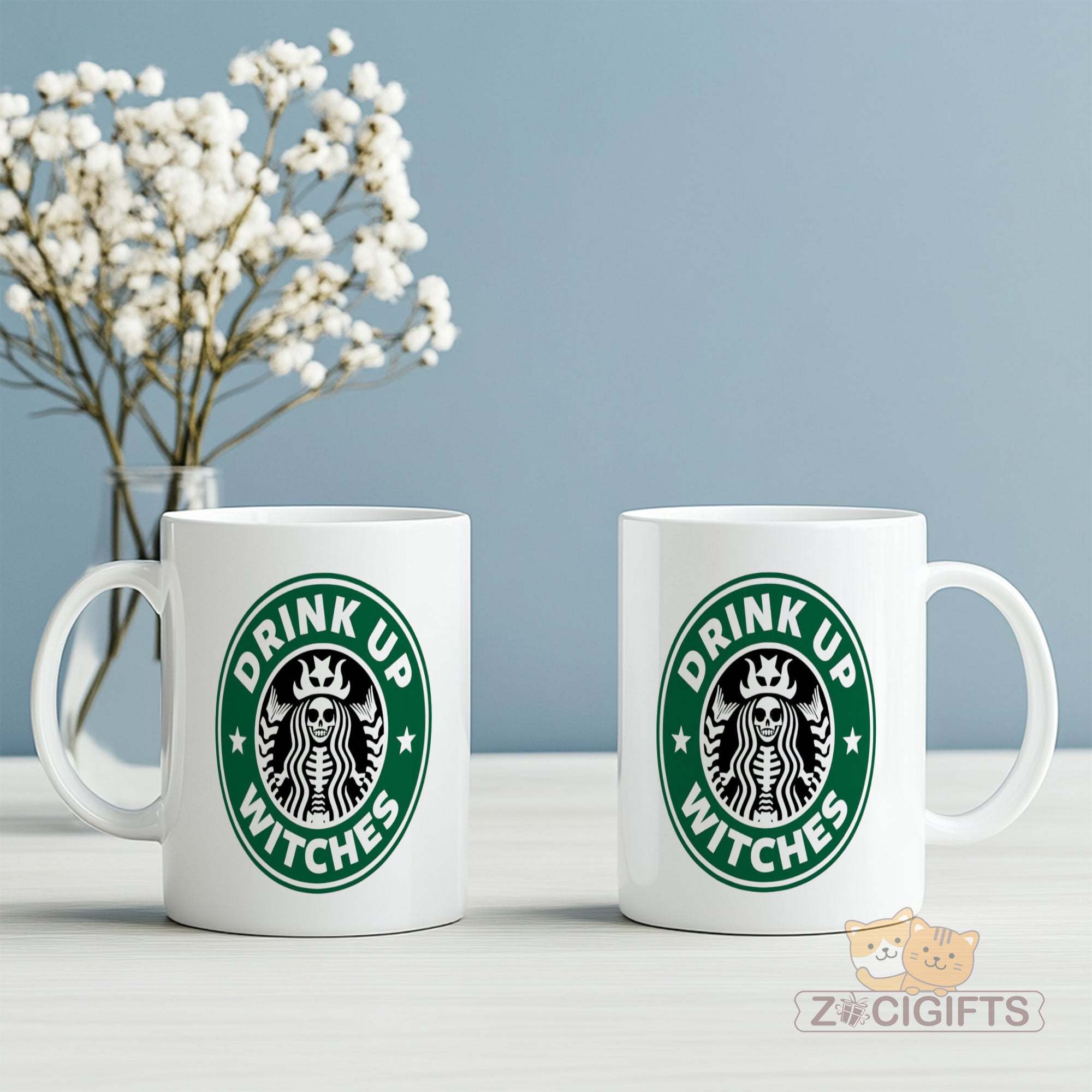 Add a spooky - yet - stylish touch to your daily beverage routine with our "Drink Up Witches" ceramic mug! This unique mug is a fun parody of the iconic Starbucks logo, featuring a skeleton - mermaid design that's perfect for Halloween or any time you want to embrace your witchy side. Whether you're sipping on coffee, tea, or your favorite potion - like drink, this mug is sure to bring smiles and spark conversations. Made from high - quality ceramic, it's durable and comfortable to hold. Ideal as a gift for witch lovers, coffee and tea enthusiasts, or anyone who appreciates a bit of spooky humor. Get yours today and make your drink time a little more magical and a lot more fun!