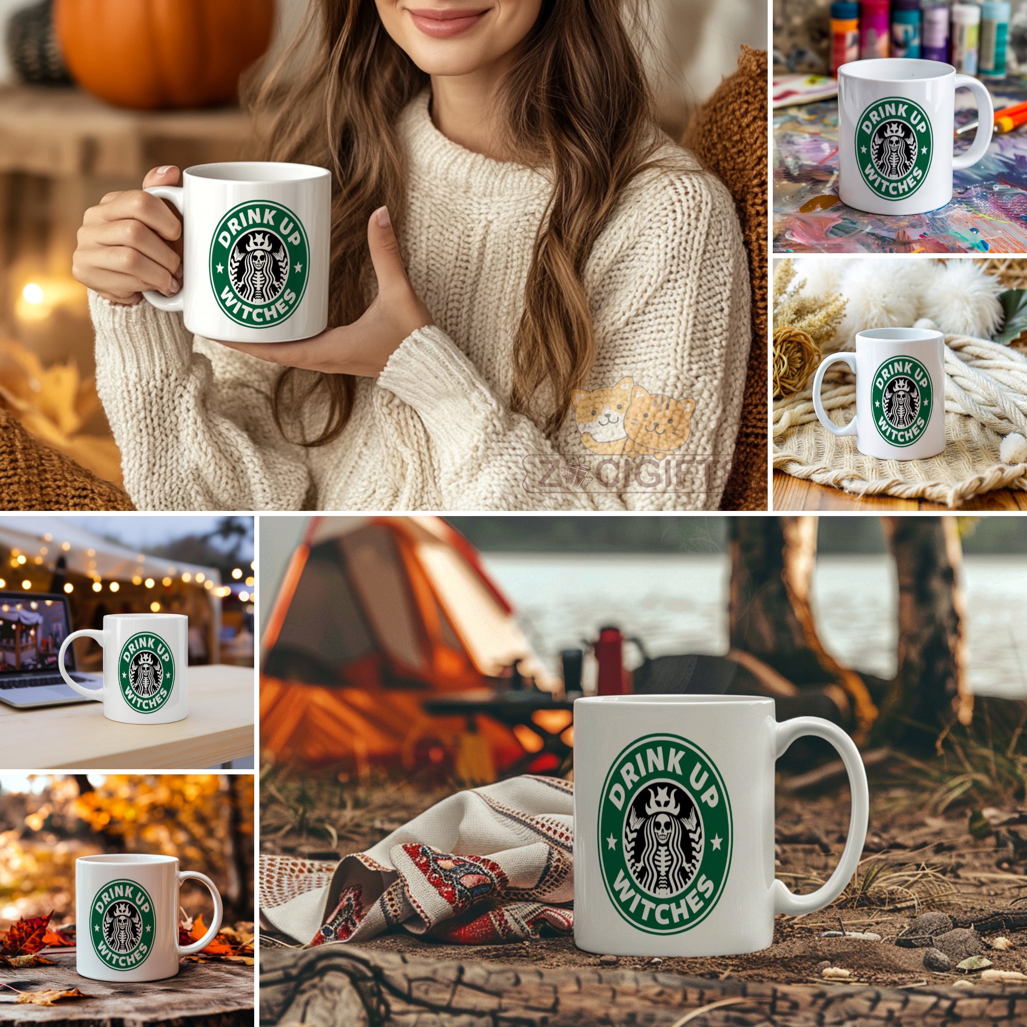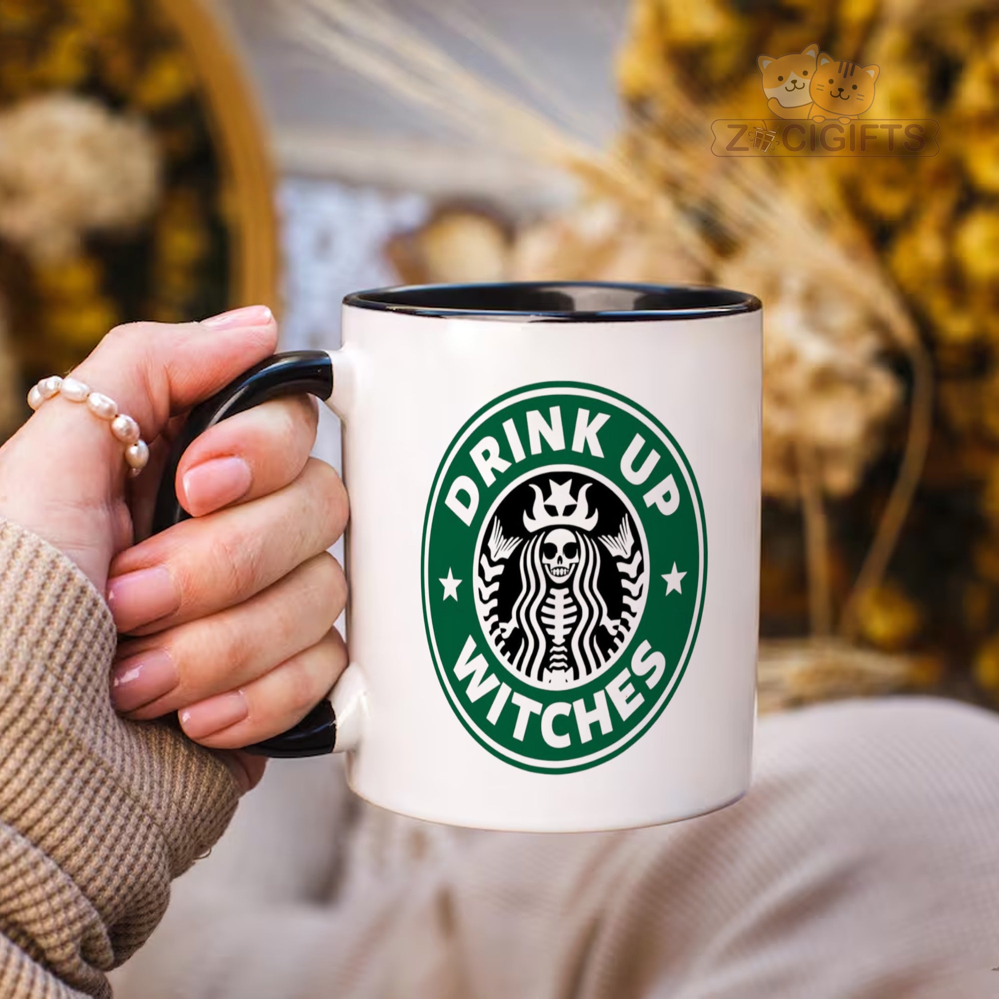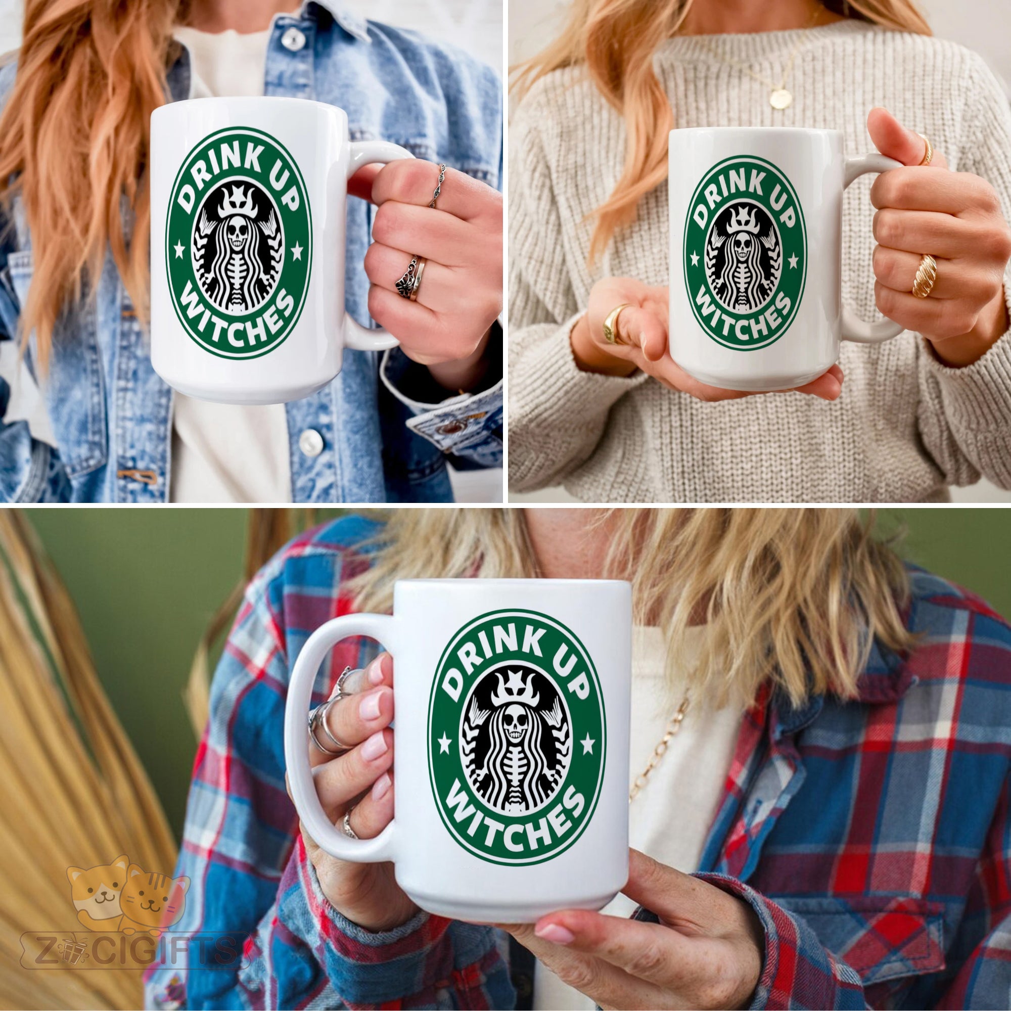 Add a spooky - yet - stylish touch to your daily beverage routine with our "Drink Up Witches" ceramic mug! This unique mug is a fun parody of the iconic Starbucks logo, featuring a skeleton - mermaid design that's perfect for Halloween or any time you want to embrace your witchy side. Whether you're sipping on coffee, tea, or your favorite potion - like drink, this mug is sure to bring smiles and spark conversations. Made from high - quality ceramic, it's durable and comfortable to hold. Ideal as a gift for witch lovers, coffee and tea enthusiasts, or anyone who appreciates a bit of spooky humor. Get yours today and make your drink time a little more magical and a lot more fun!