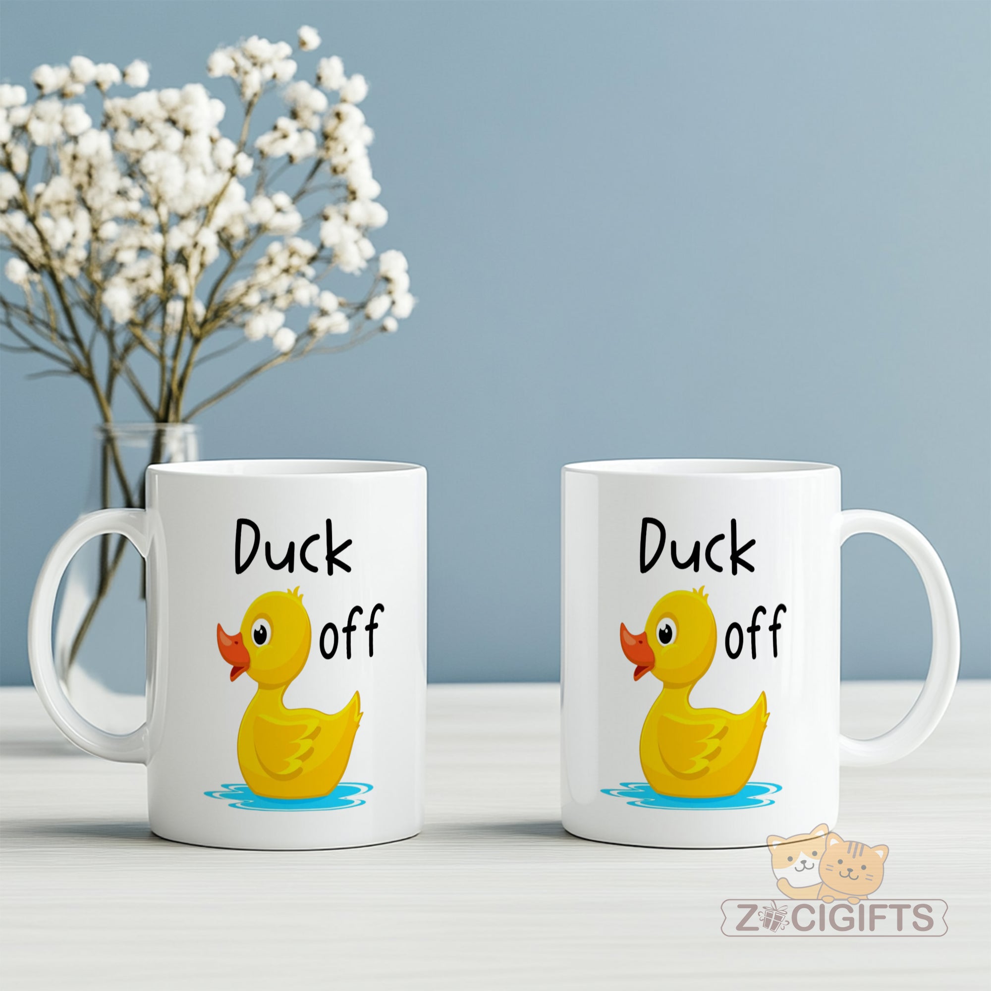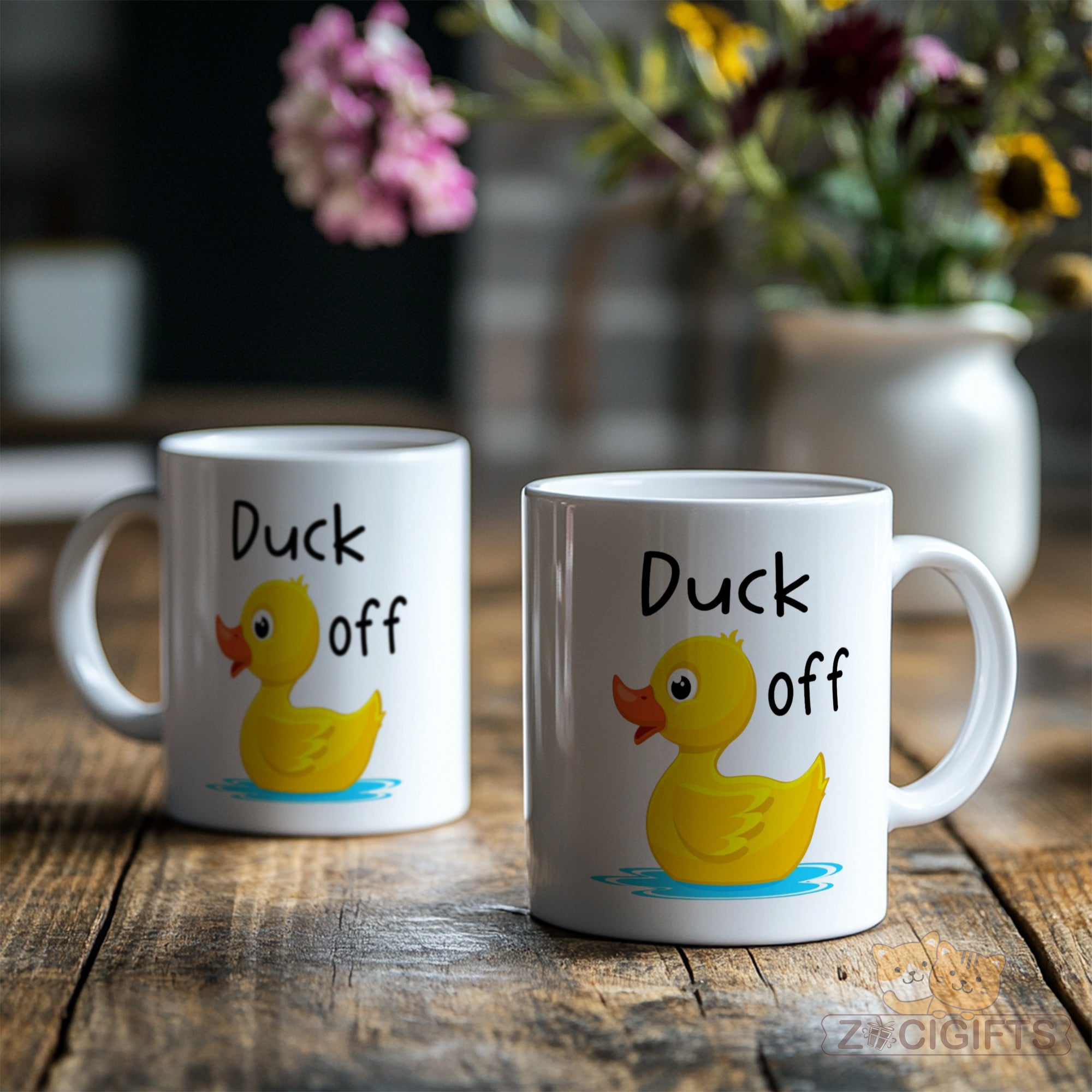 Add a touch of humor to your daily routine with our Funny Duck Mug! This novelty ceramic cup features a cute yellow duck and the playful phrase "Duck Off", making it the perfect conversation starter. Whether you're sipping your morning coffee or relaxing with an afternoon tea, this mug will surely bring a smile to your face.