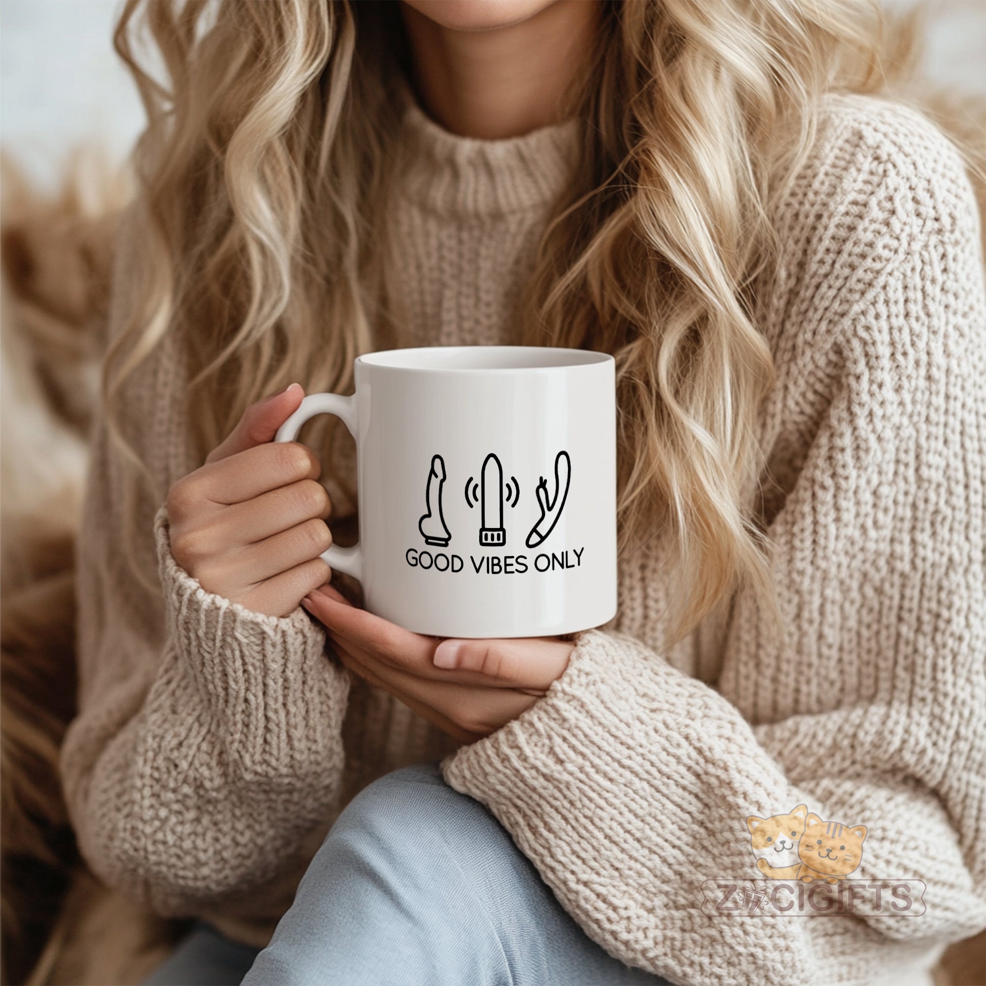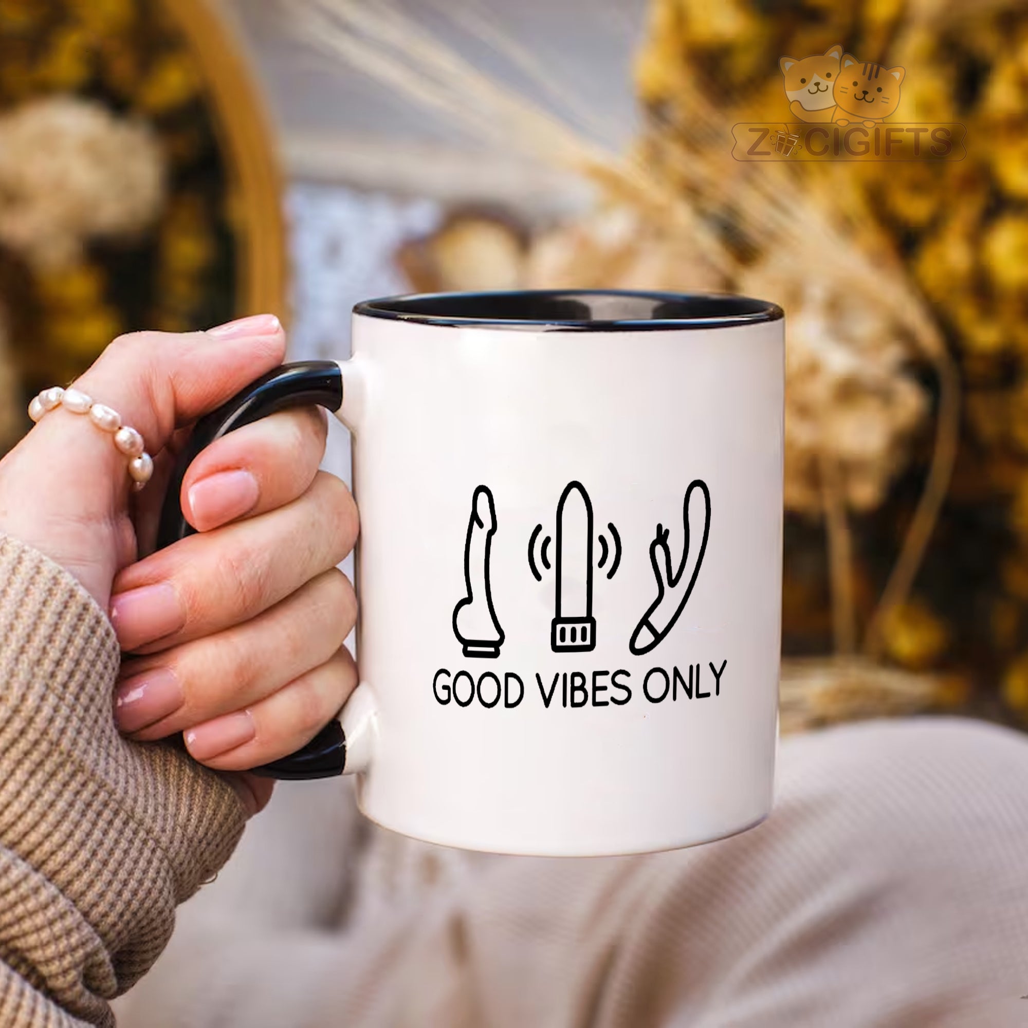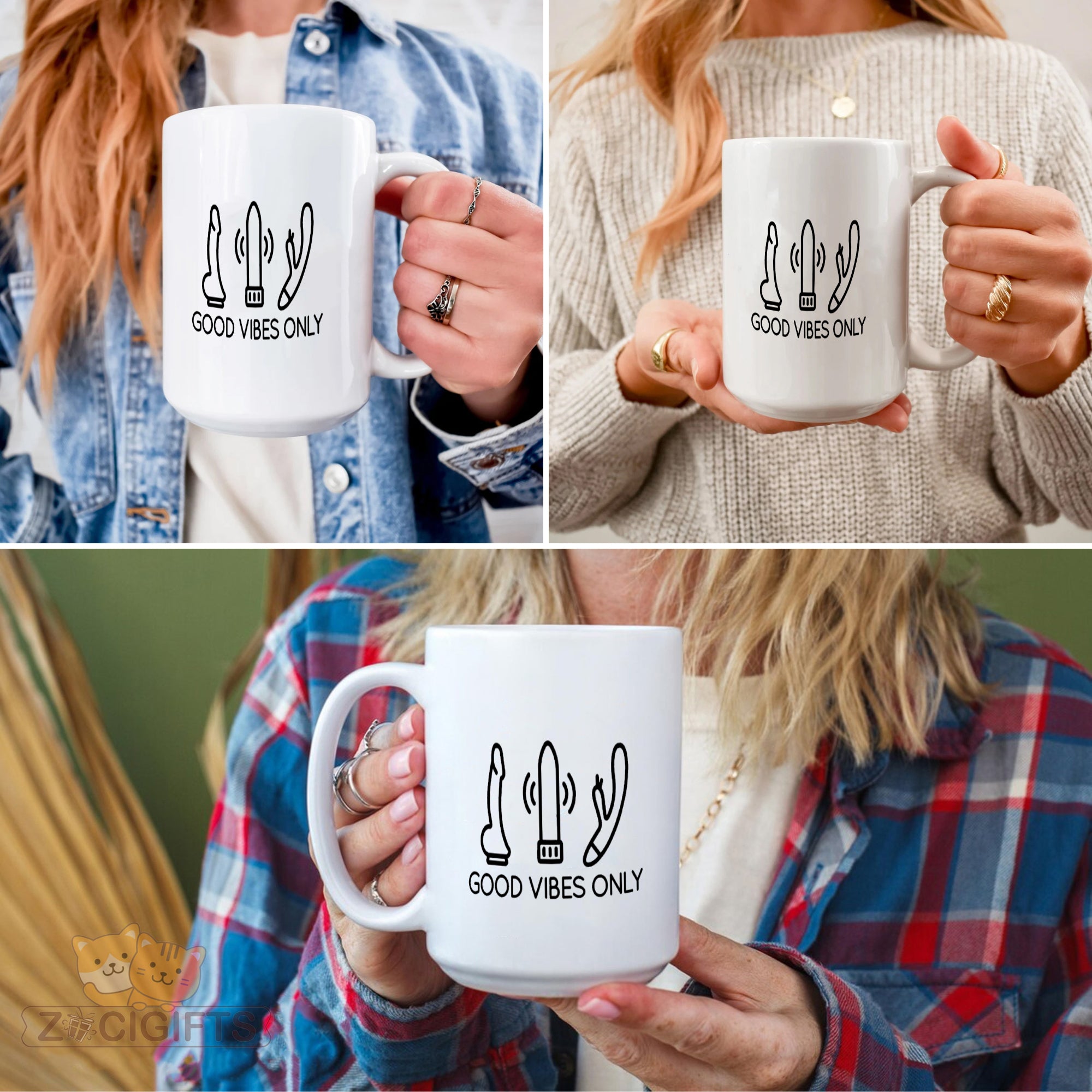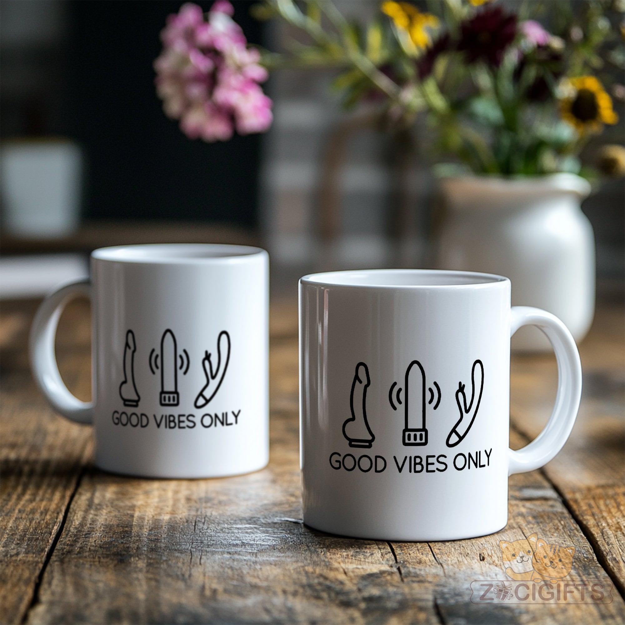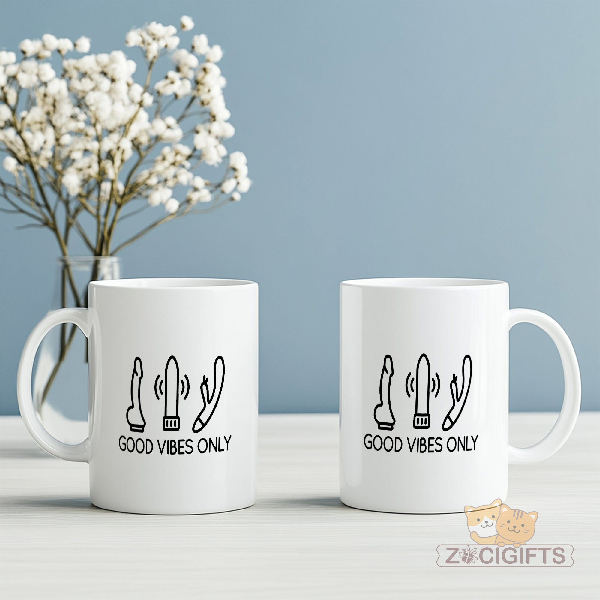 Feast your eyes on the minimalist artwork: three stylized adult toy illustrations paired with the upbeat text "GOOD VIBES ONLY". It’s a perfect blend of humor, boldness, and lighthearted energy — ideal for your morning coffee, evening unwind, or anytime you want a playful pick-me-up.