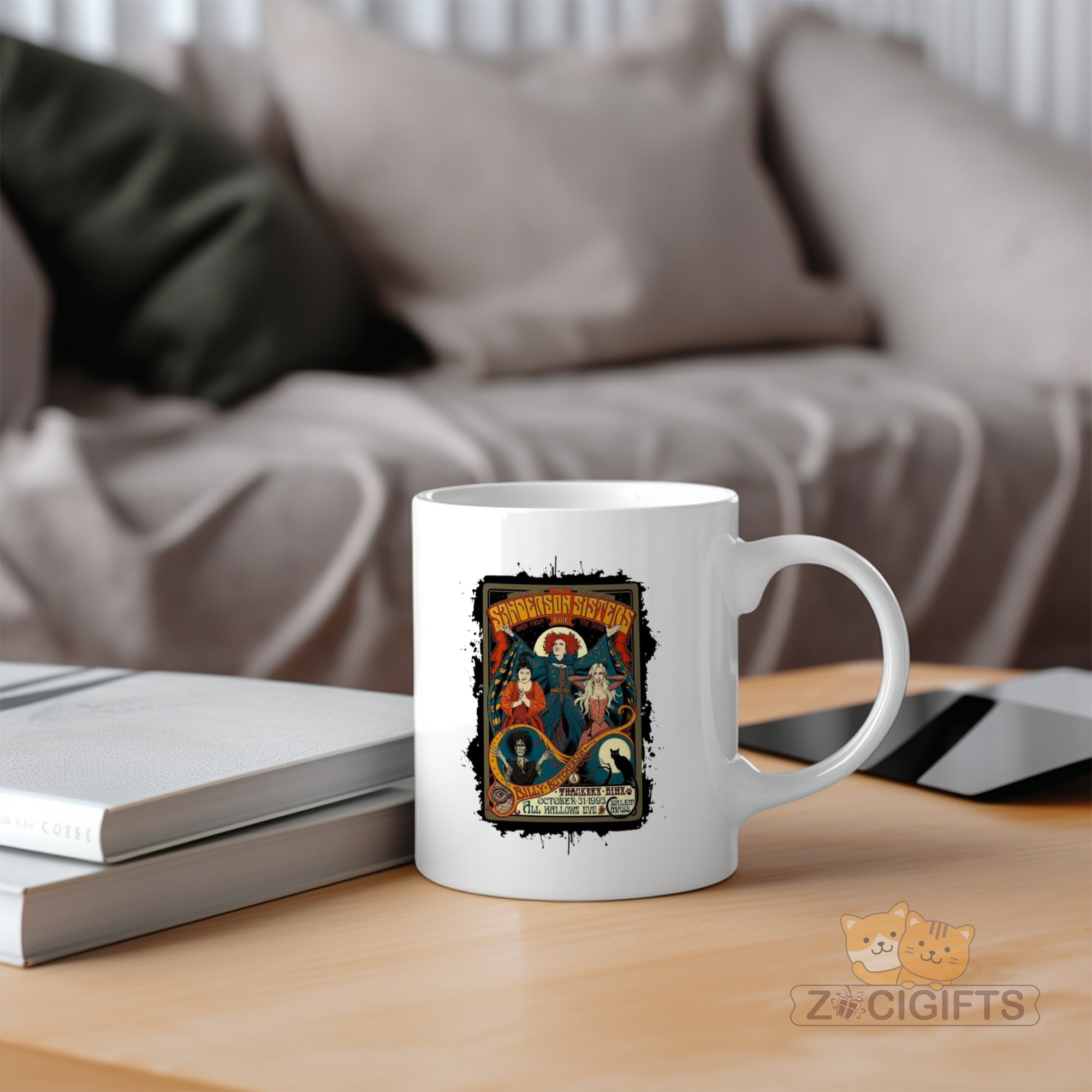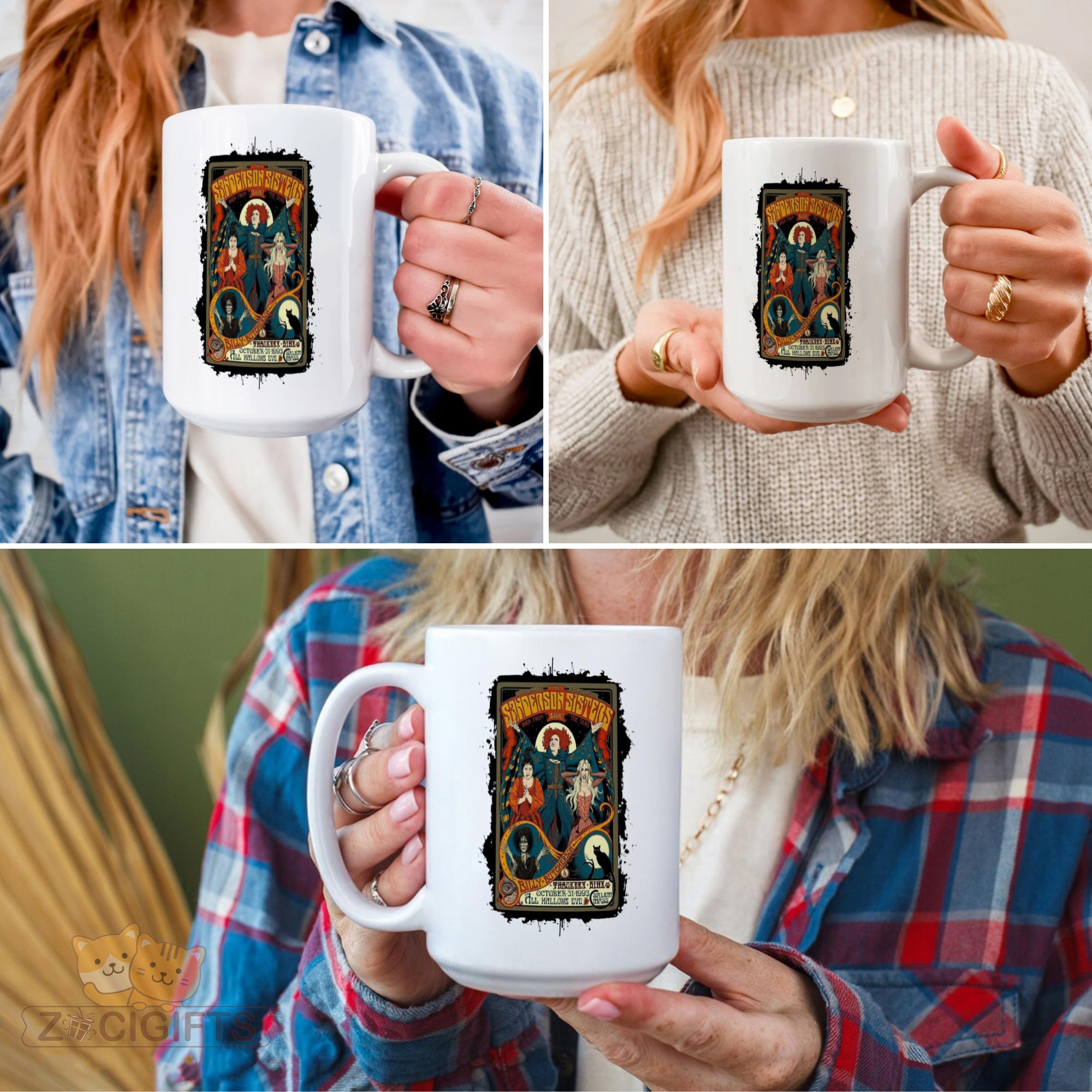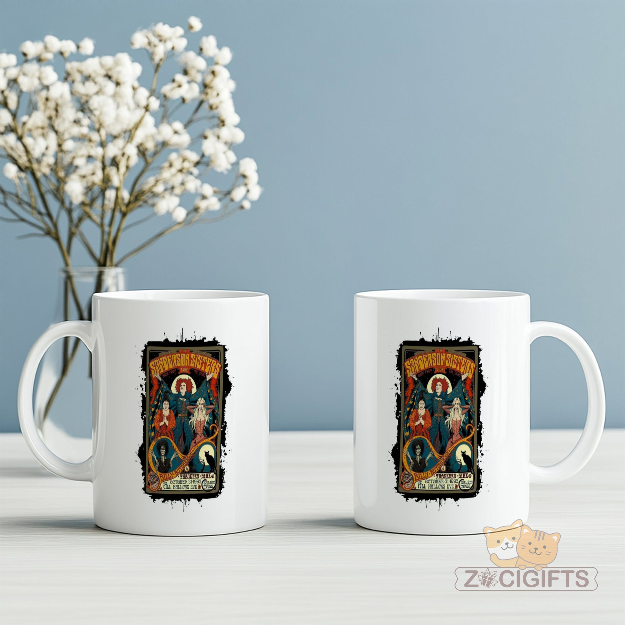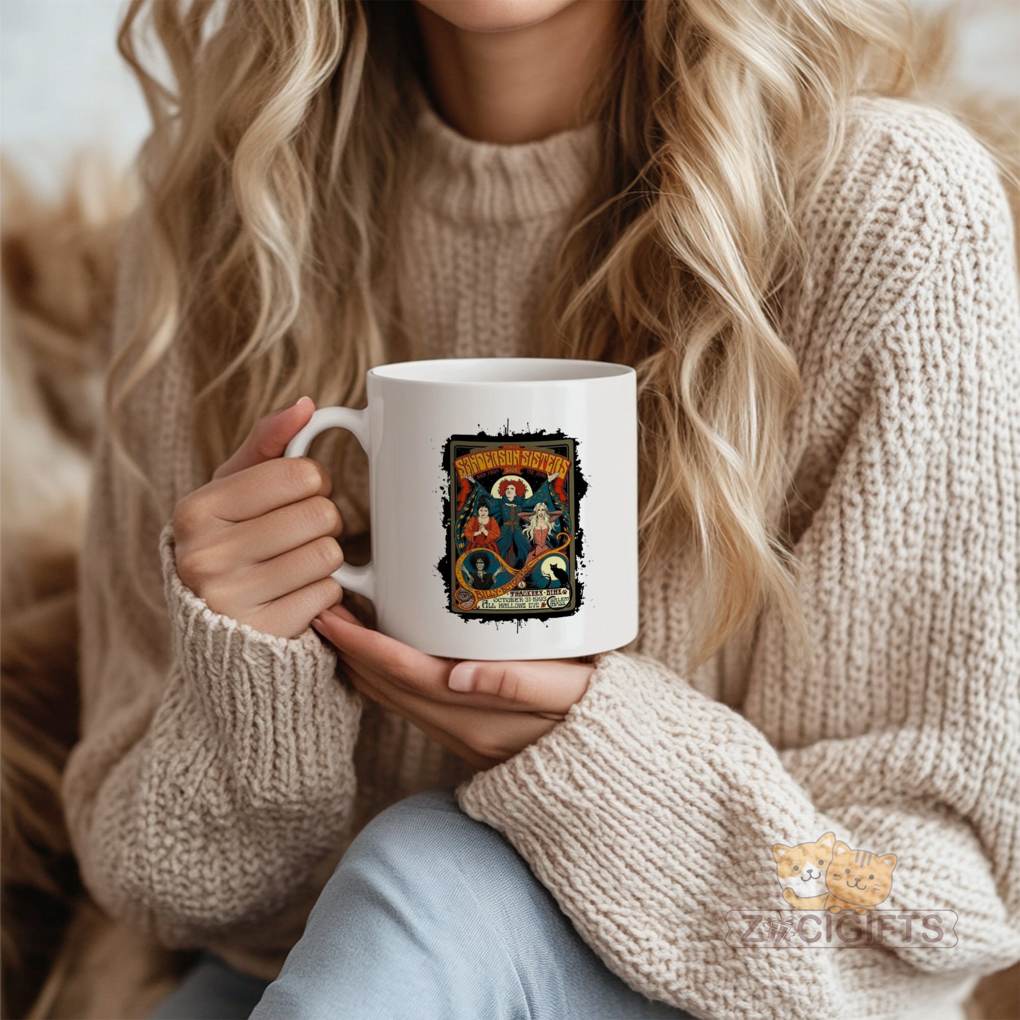 Elevate your daily coffee or tea ritual with this charming Hocus Pocus Sanderson Sisters vintage - style ceramic mug! Inspired by the beloved cult - classic movie "Hocus Pocus," this mug features a stunning and detailed illustration of the Sanderson Sisters on its front.