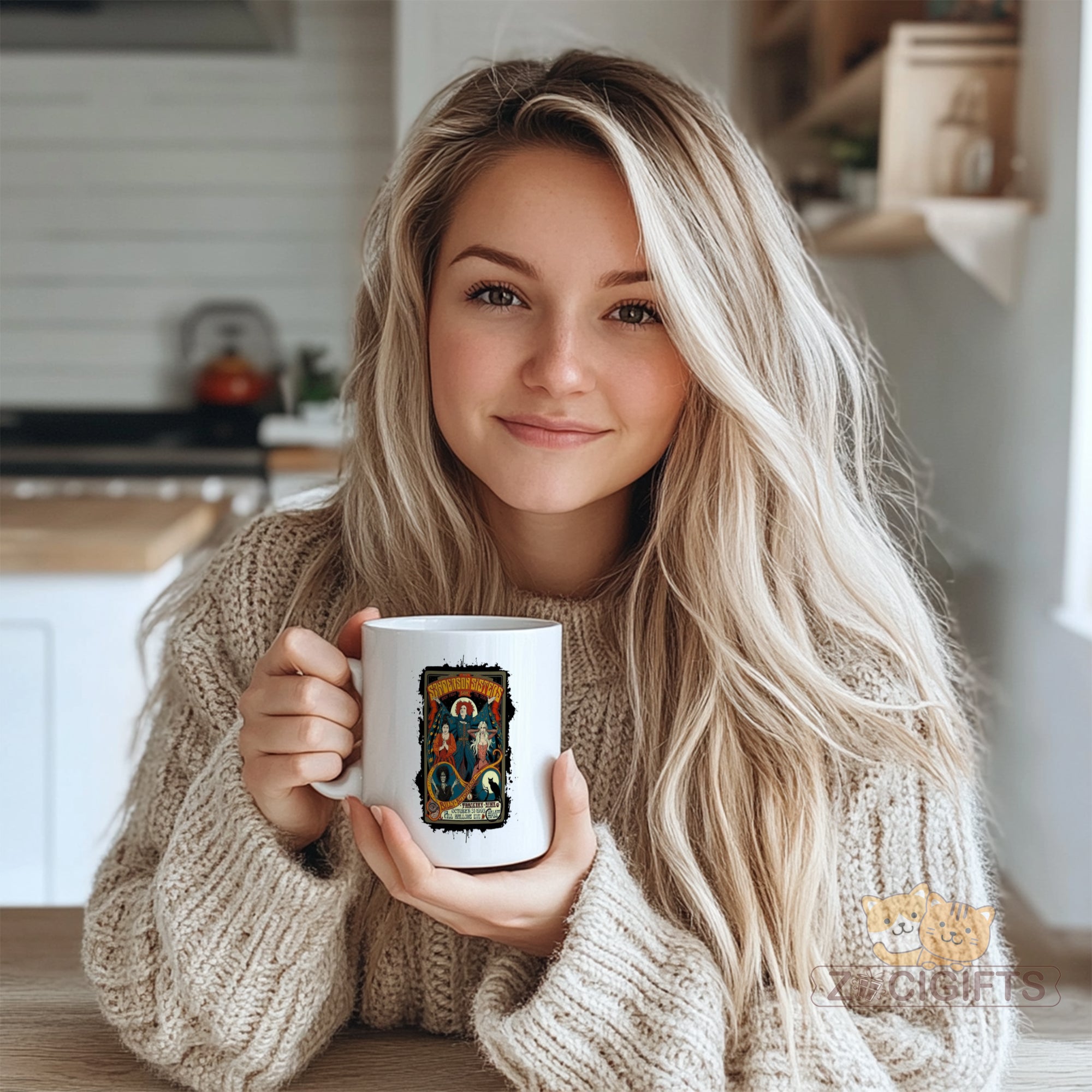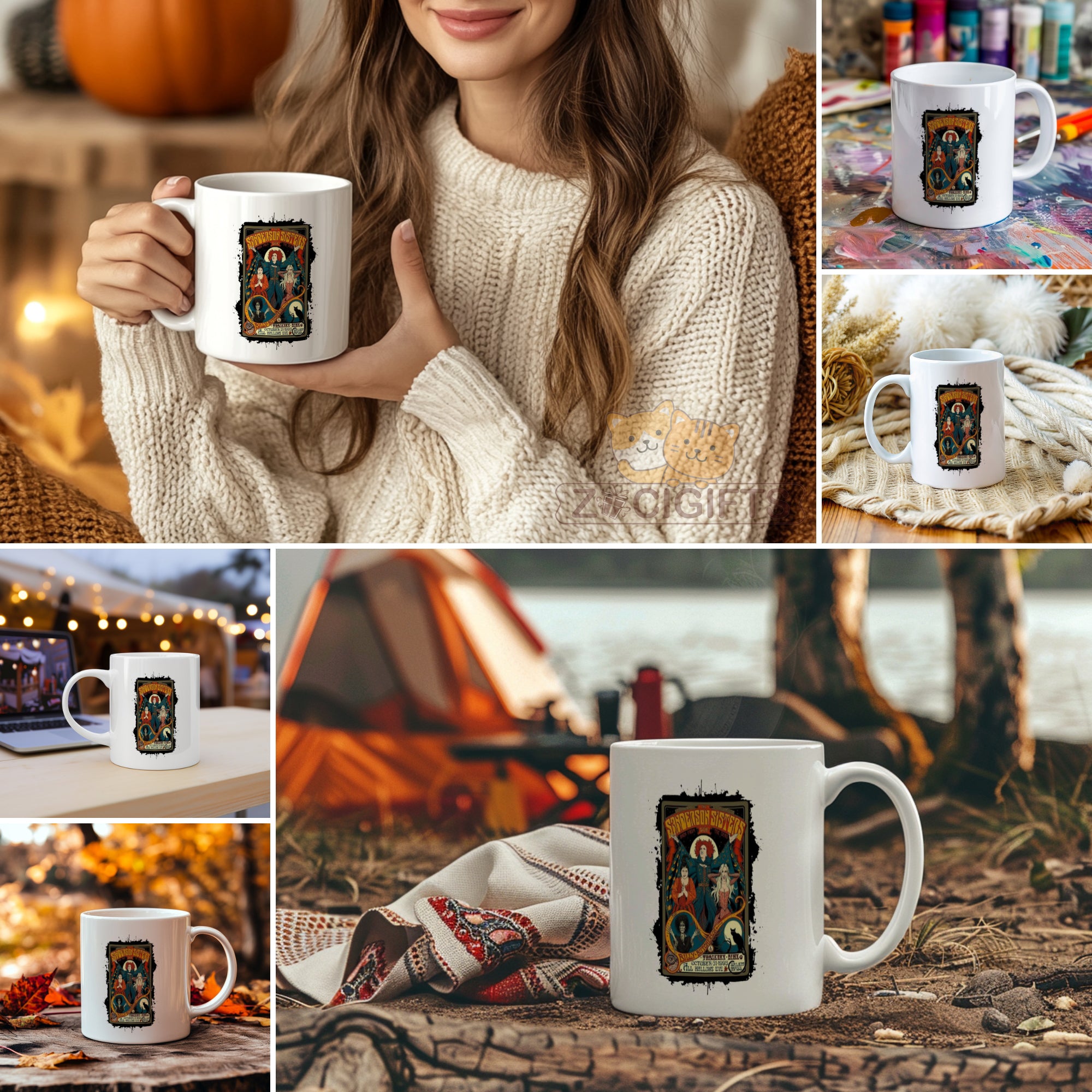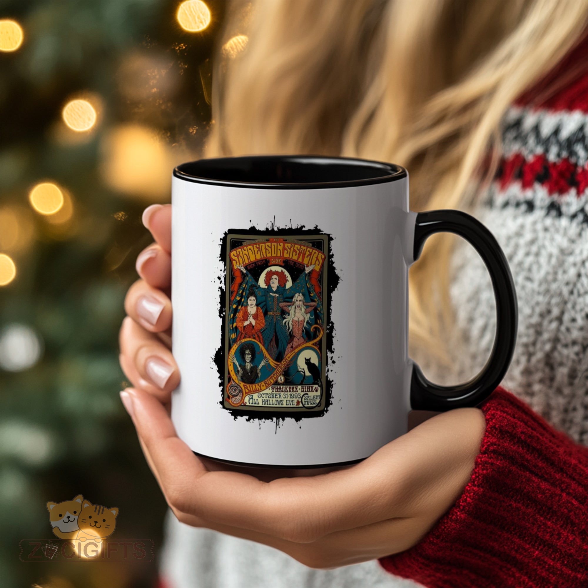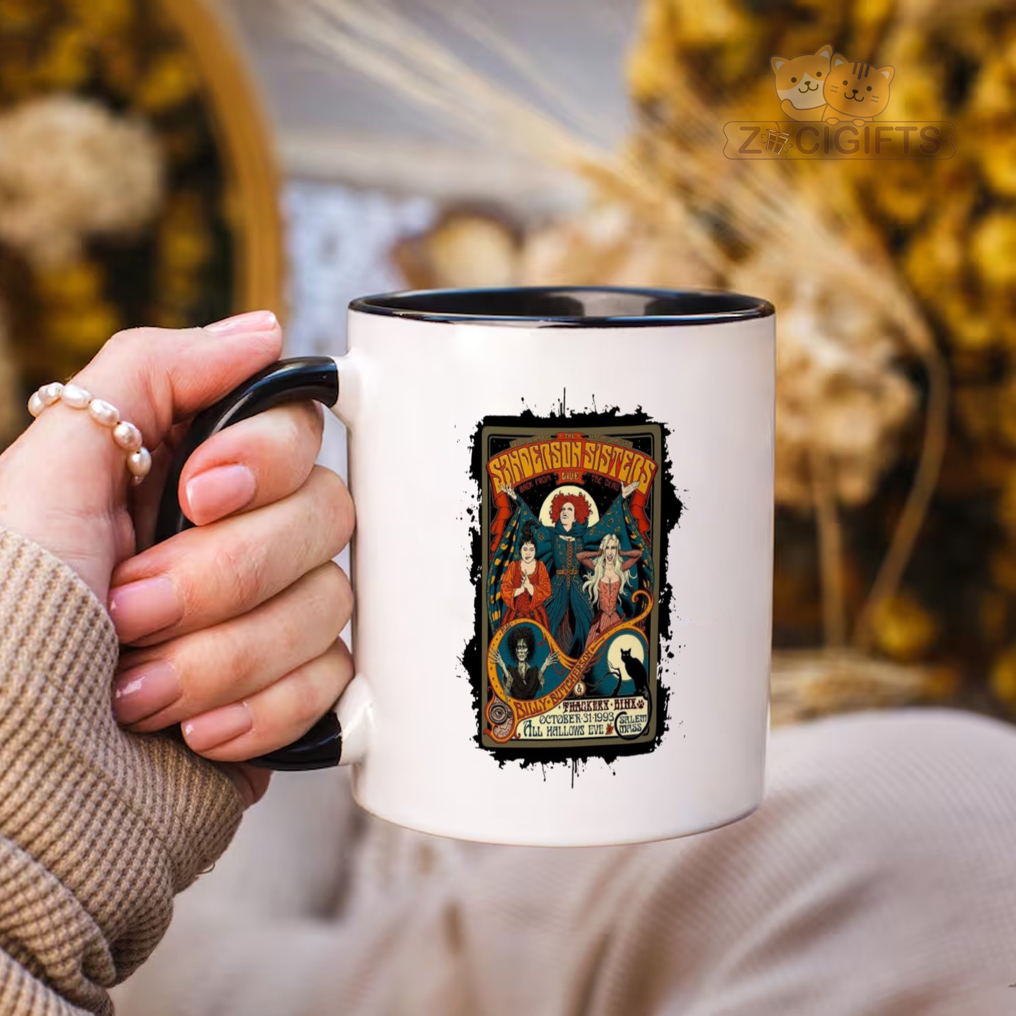 Elevate your daily coffee or tea ritual with this charming Hocus Pocus Sanderson Sisters vintage - style ceramic mug! Inspired by the beloved cult - classic movie "Hocus Pocus," this mug features a stunning and detailed illustration of the Sanderson Sisters on its front.