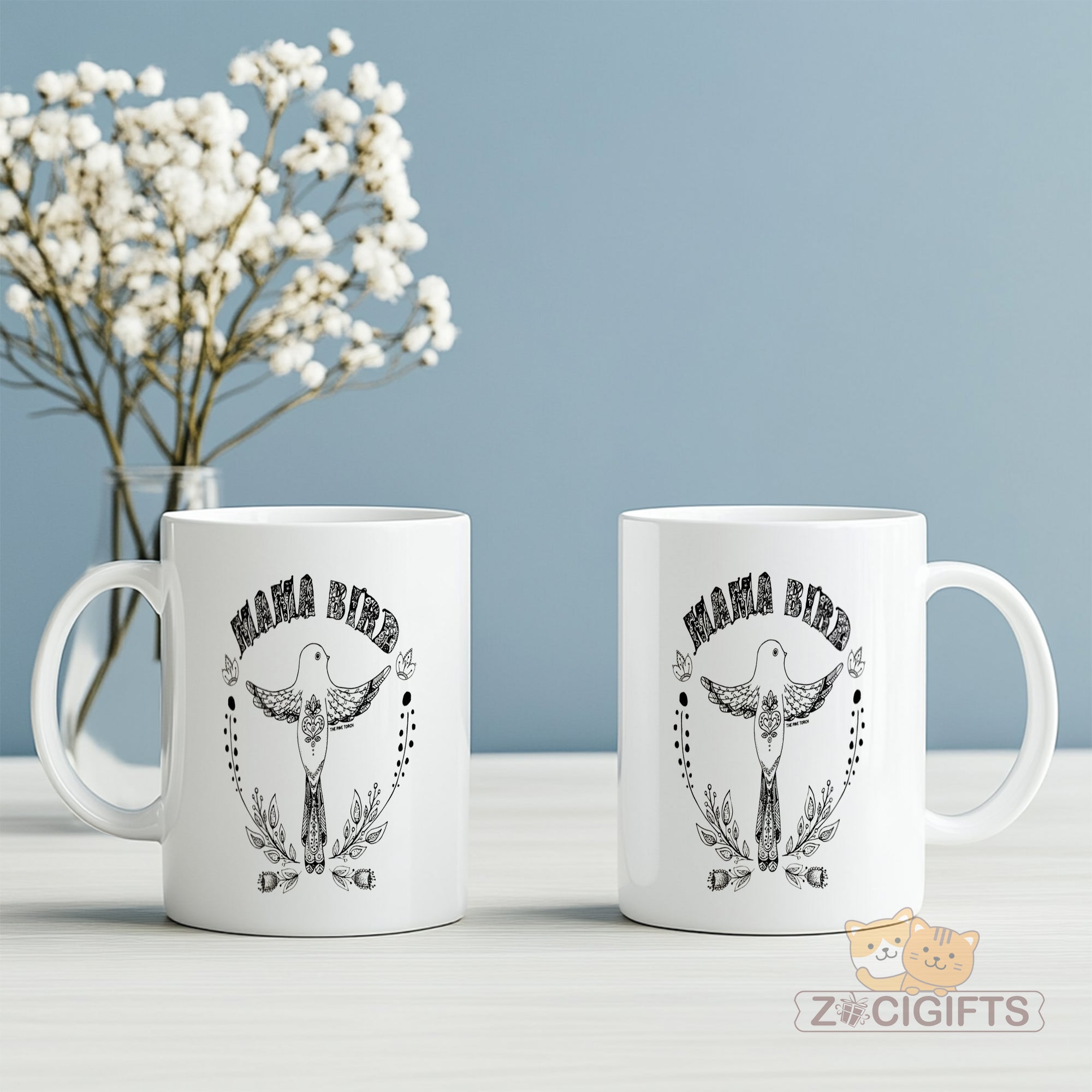 If you want to celebrate the nurturing spirit of motherhood with whimsical folk art charm — this “Mama Bird” mug is your perfect gift. Featuring a detailed, hand-drawn bird (symbolizing a caring “mama bird”) surrounded by floral accents, plus the bold text “MAMA BIRD,” it’s ideal for moms, bird lovers, or anyone who adores cozy,民俗-inspired (folk-inspired) decor.