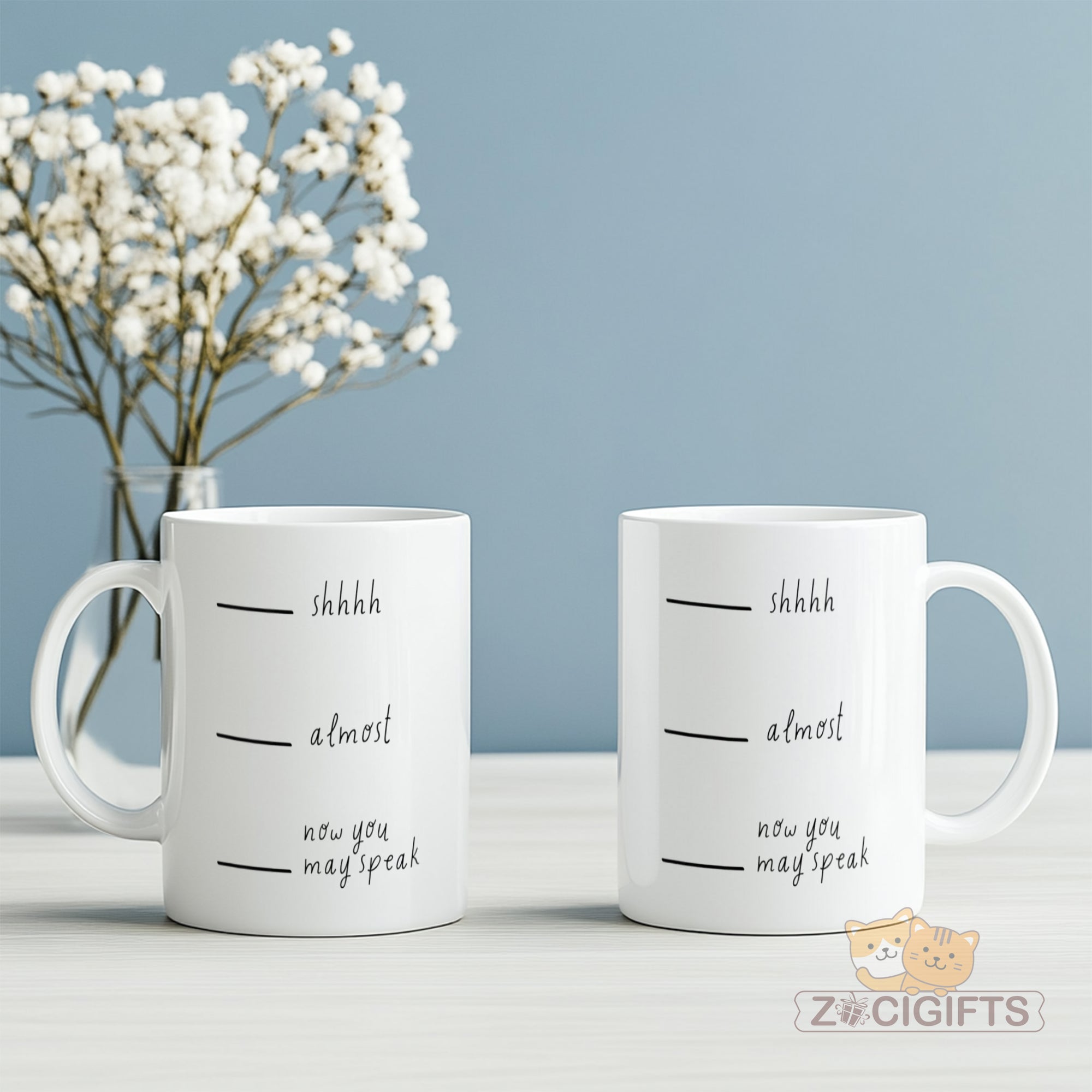 If you thrive on sarcastic vibes, office humor, or just love a mug that playfully “manages” conversations, our "Shhhh Almost Now You May Speak" Mug is made for you. This isn’t just a drinkware piece — it’s a witty companion for your morning routine, wrapped in sassy step-by-step “silence to speech” guidance.