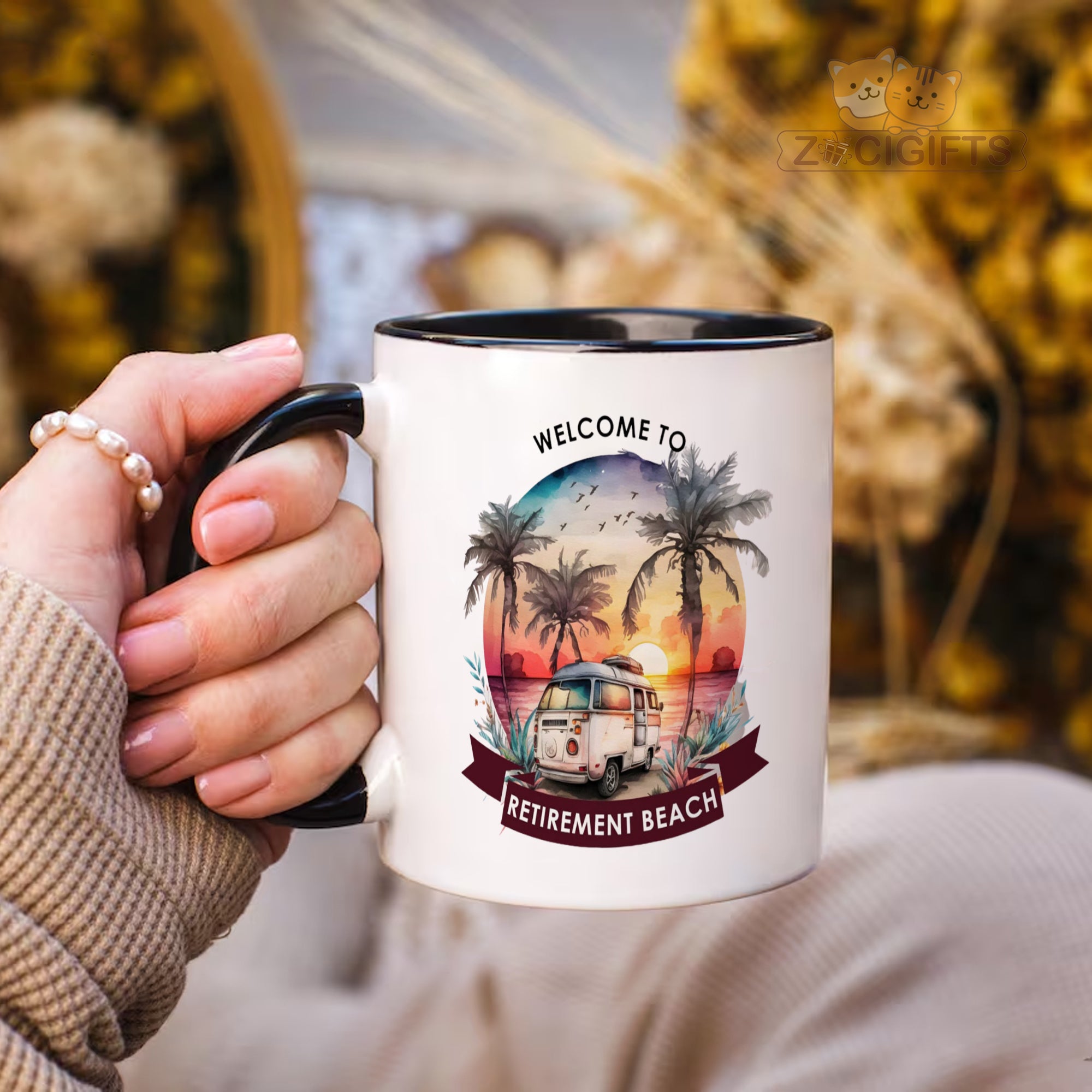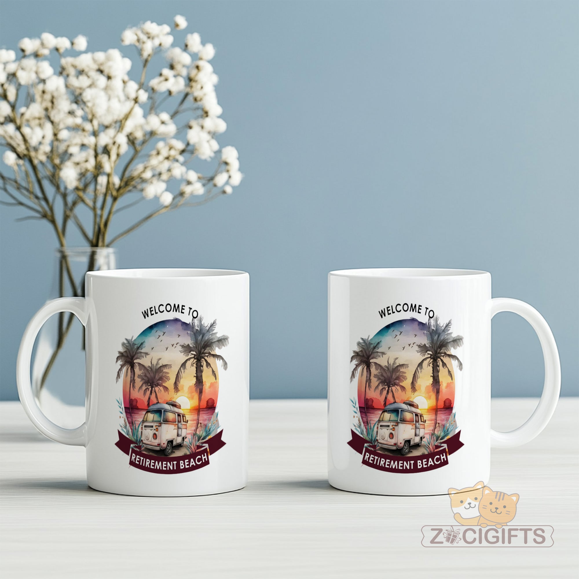 Indulge in the tranquility of retirement with our "Welcome to Retirement Beach" mug. This isn't just a mug; it's a daily dose of inspiration and relaxation. The charming design showcases a vintage camper parked by the beach during a breathtaking sunset, surrounded by lush palm trees. It's the ideal reminder of the laid - back lifestyle that retirement brings. Crafted from high - quality ceramic, this mug is built to last. Its sturdy construction ensures that it can withstand daily use, whether you're sipping your morning coffee, enjoying an afternoon tea, or winding down with an evening hot chocolate. The large capacity means more of your favorite beverage and fewer trips to the kitchen. This mug makes for a perfect gift for retirees. Whether it's for a family member, friend, or colleague who has recently embarked on their retirement journey, it's a thoughtful present that they'll cherish. It's also great for yourself! Treat yourself to a little piece of paradise every time you use this mug. The design is printed using high - definition techniques, ensuring that the colors are vibrant and long - lasting. The smooth finish of the ceramic combined with the beautiful artwork creates a visually appealing and tactilely pleasing product. So, raise a toast to retirement with our "Welcome to Retirement Beach" mug and start every day with a smile.