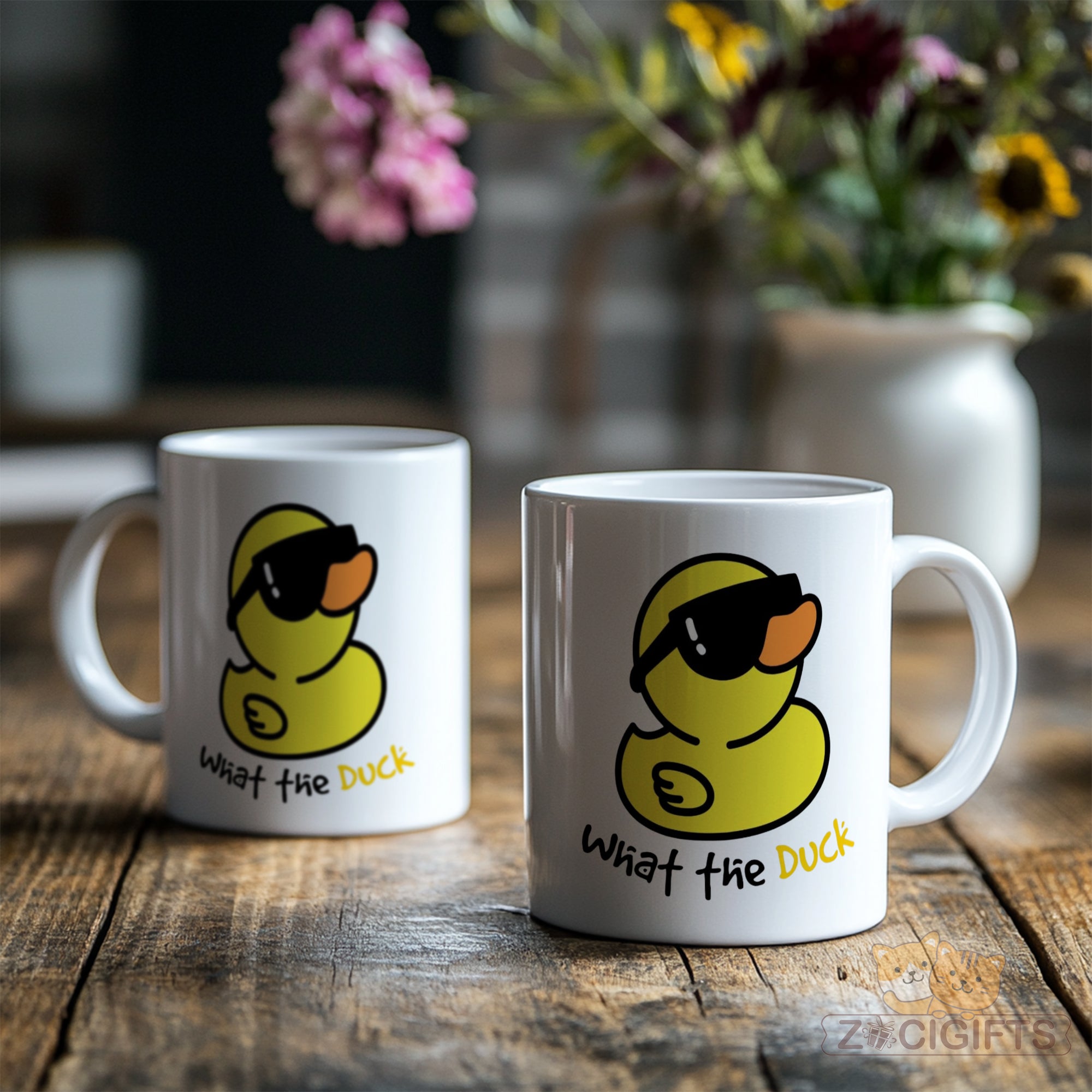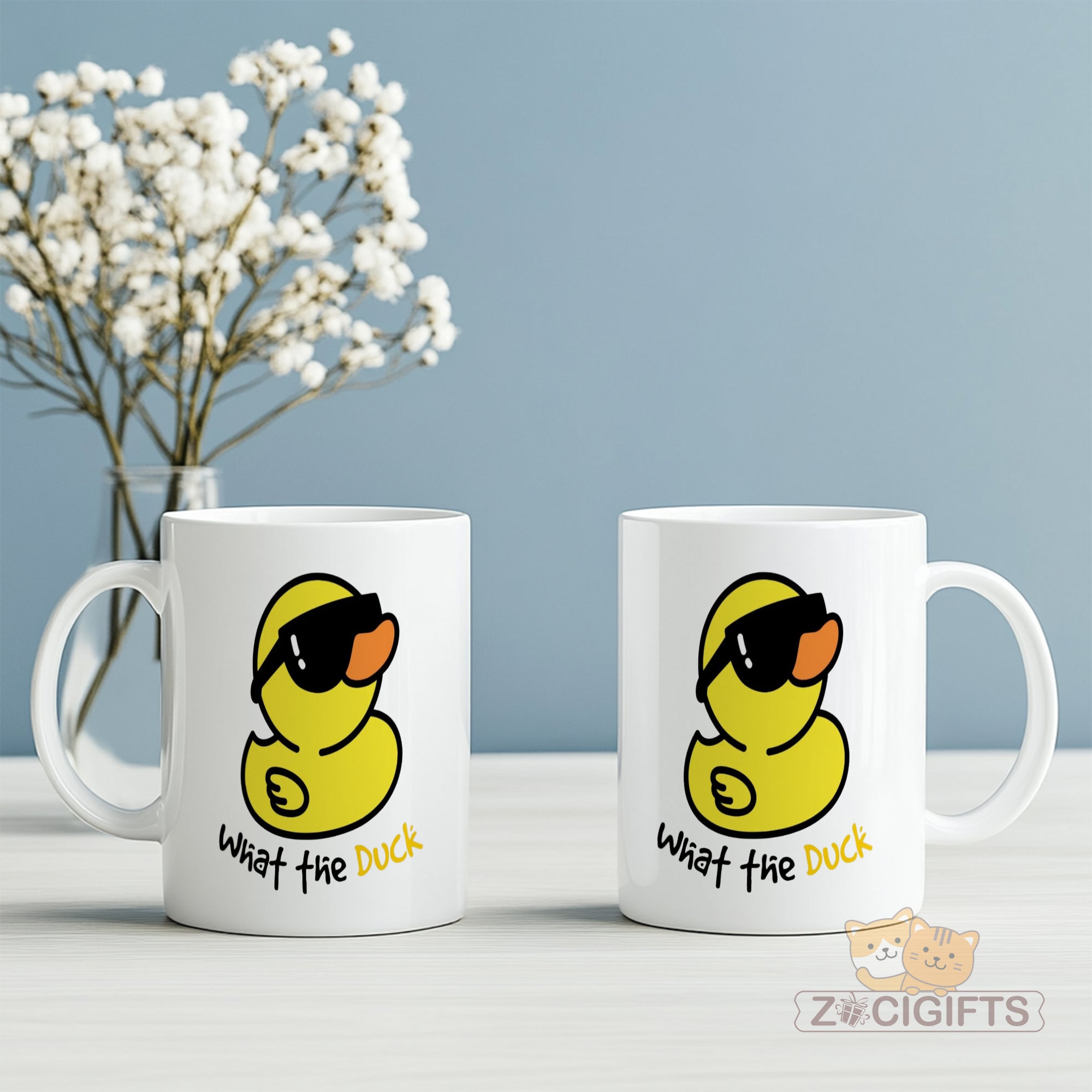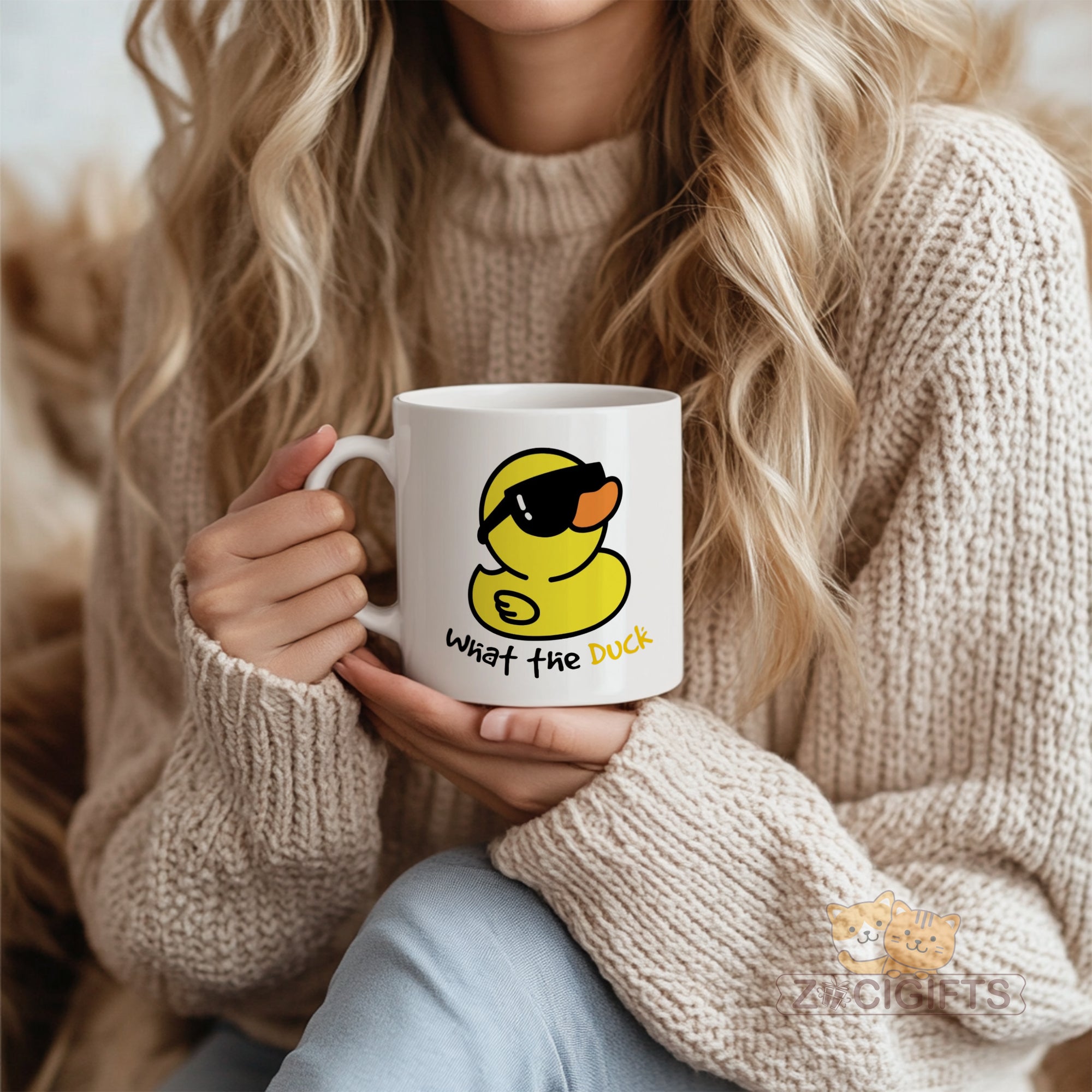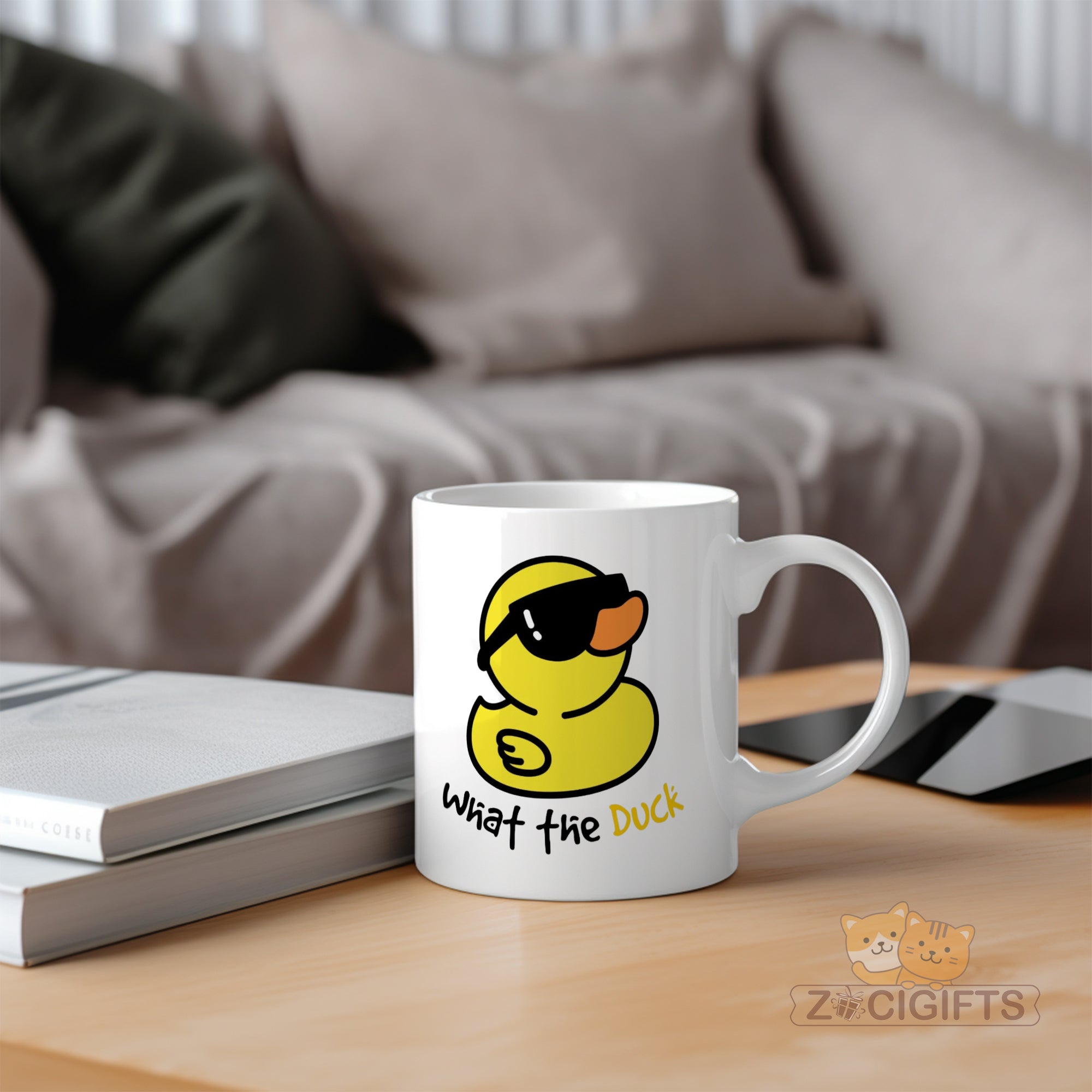 Elevate your daily drinkware collection with our ¡°What The Duck¡± Novelty Ceramic Mug! Featuring an adorable rubber duck sporting cool sunglasses, this mug combines quirky humor and functionality.