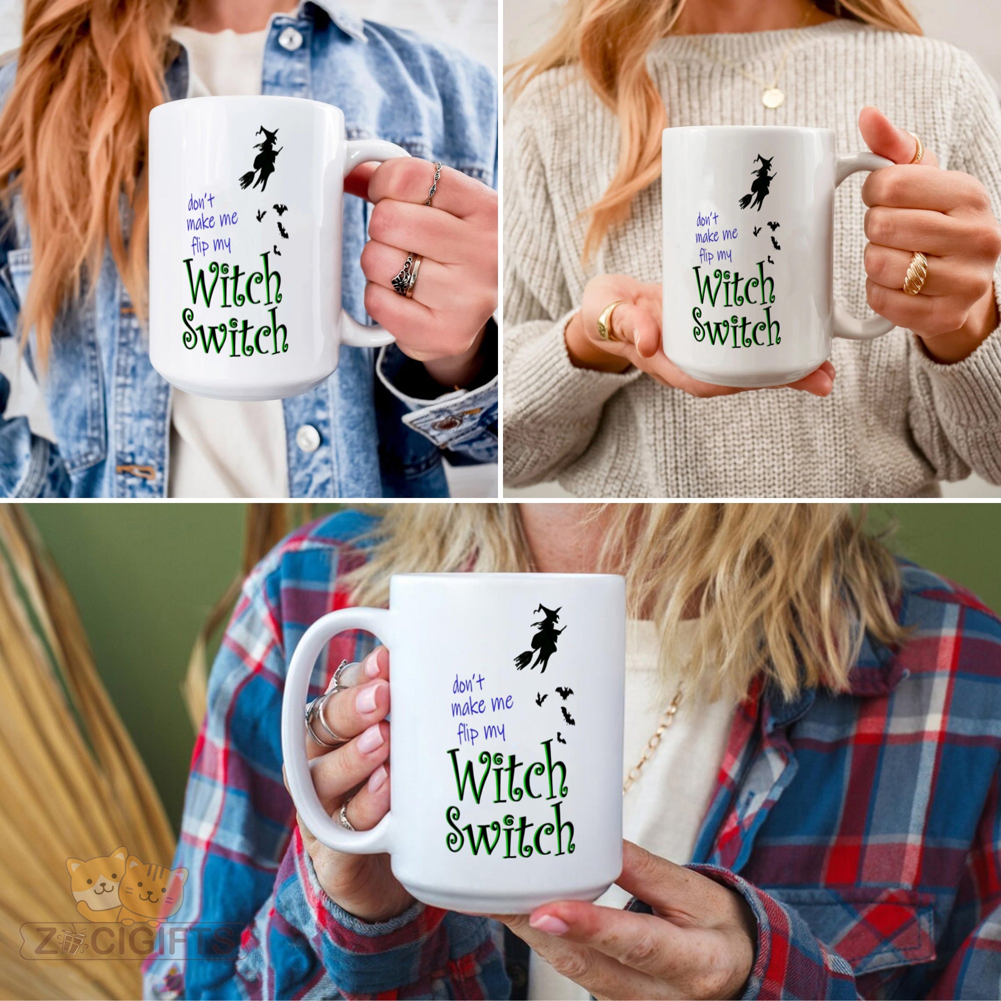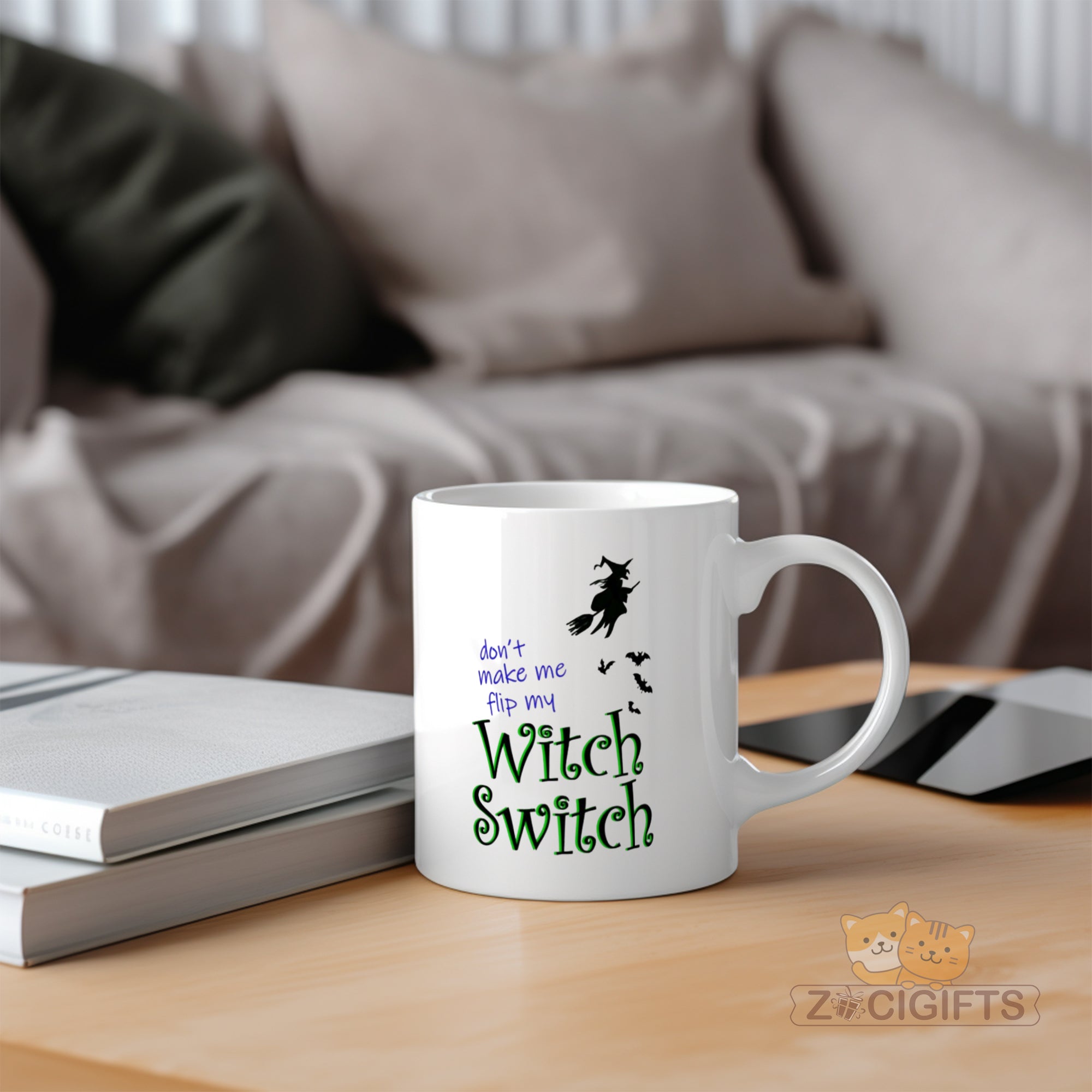 The humorous catchphrase "don't make me flip my Witch Switch" is written in a fun, eye - catching font, adding an extra layer of charm and personality to the mug. Whether you're a practicing witch, a fan of magical themes, or just looking for a unique and quirky gift, this mug is perfect for you.
